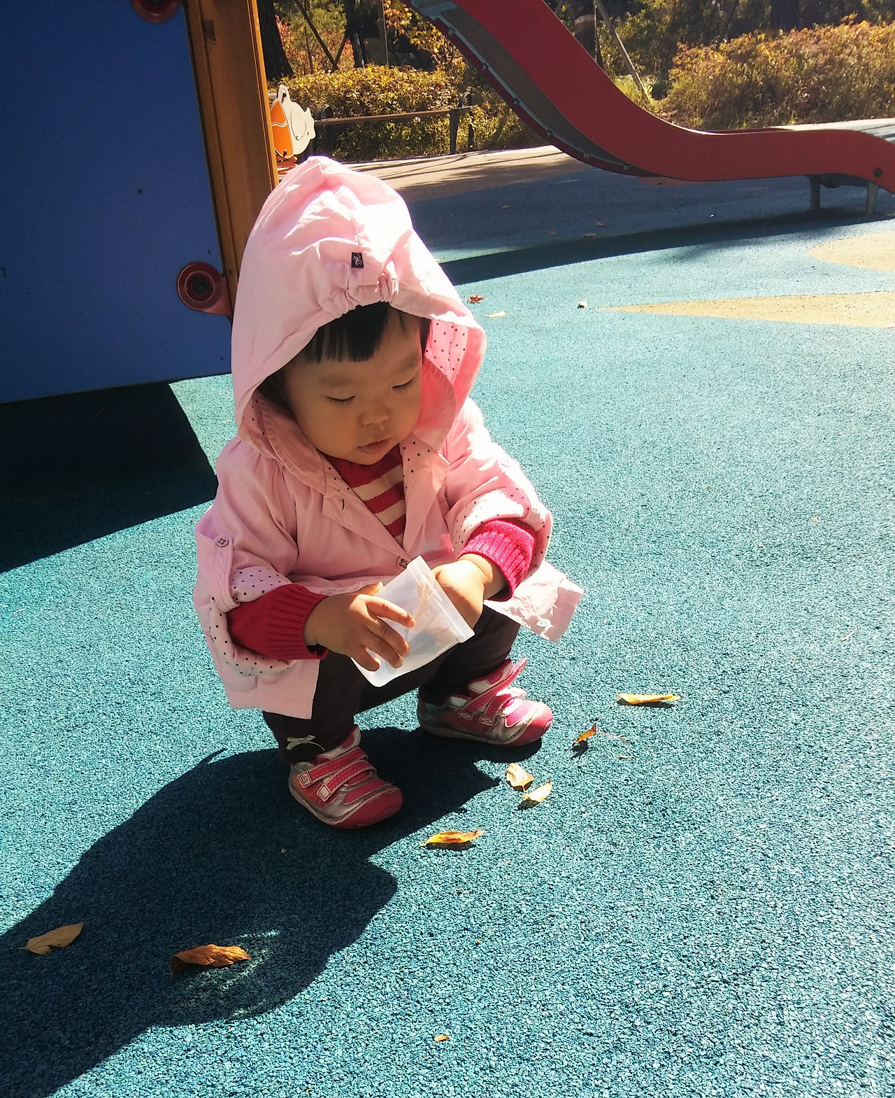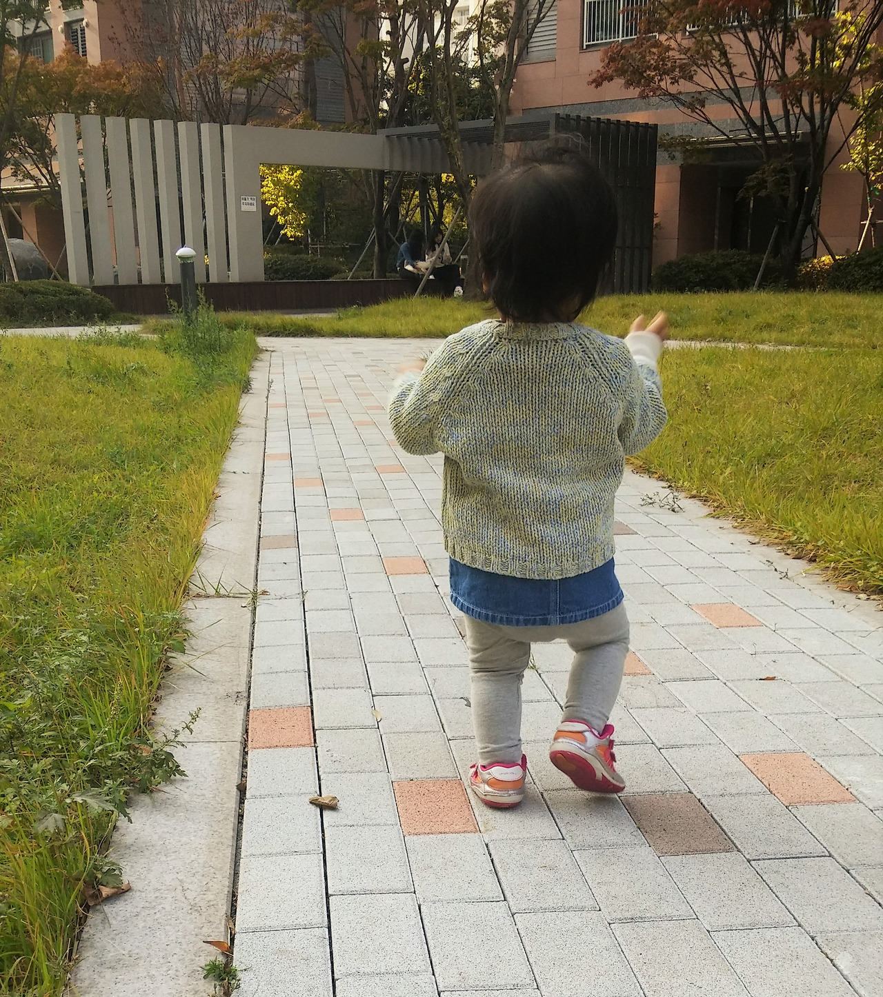 너와의 산책길은 매일 새롭다. 늘 같은 길이지만 너의 시선과 너의 걸음을 따라 닿는 곳엔 작고 눈에 띄지 않는 것들이 있다. 오늘도 걸음마다 떨어진 나뭇잎을 주워 내 손에 쥐어준다. 갑자기 저만치 뒤뚱대며 뛰어가더니 쪼그리고 앉아 바닥 보도블록 사이에 끼인 이끼를 쑤셔보고, 줄지어 가는 개미도 괜히 한 번 건드려본다. 흥얼흥얼 노래를 중얼거리며 걷다가 길이 아닌 곳으로 갑자기 뛰어들어가 바닥에 털썩 주저앉기도 한다. 숨이 차도록 달리다가 "이게 무슨 소리지?" 하고 새소리나 개구리 소리에 귀를 기울인다. 날 뒤따라오고 싶어 하다가도 다시 앞장서서 걷고 싶어 하기도 한다. 잠시 벤치에 앉아 군것질을 하며 쉬어가는 순간도 있다. 어서 가자고 재촉할 필요도 없고, 이리로 가자고 잡아끌 필요도 없다. 그저 느릿느릿 두리번거리며 마음 가는 대로 걷는다. 어디라는, 또는 언제 까지라는 목적이 없어 그 어떤 것에도 귀속되지 않는 순간에 충실한 그런 걷기. 평온하고 행복한 순간이다.