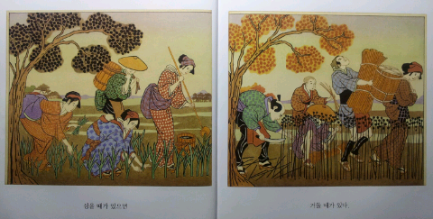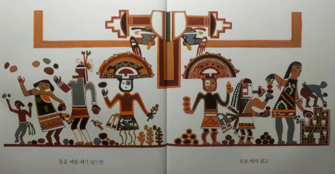 무슨 일이든 다 때가 있다. 성경의 전도서에 나오는 유명한 구절이다. 전도서 제 3장 1절부터 8절, 제 1장의 4절의 내용을 바탕으로 엮은 그림책이다. 2천년 이상 전해져오면서 널리 인용되어 온 만큼 종교를 넘어선 지혜를 담고 있다. 이 그림책이 더욱 감탄스러운 것은 각 구절마다 세계 각지의 다양한 역사와 전통이 담긴 예술 양식을 녹여내고 있다는 점이다. 이집트의 벽화, 일본의 목판화, 푸에블로 인디언의 벽화양식, 중국의 비단그림, 인도 무굴 왕조 시대의 그림, 오스트레일리아 원주민의 나무껍질 그림 등에서 인간 삶에서 일어나는 다양한 모습을 보여준다. '무슨 일이든 때가 있다'는 지혜는 문화, 종교, 역사와 인종이 달라도 인간이라면 누구나 겪는 삶의 면면에 걸친 공통적 경험과 통찰이라는 작가의 의도일까. 그래서 들여다보면 들여다볼수록 그 여운이 깊고 새롭다.
