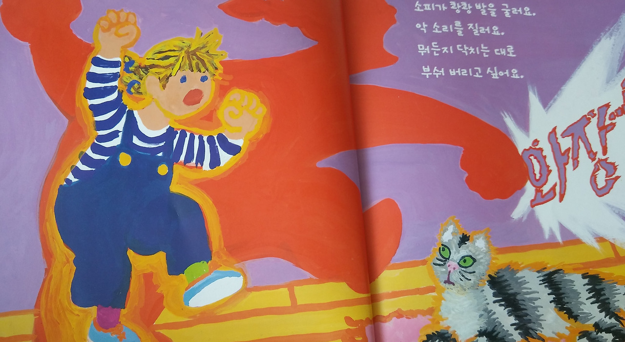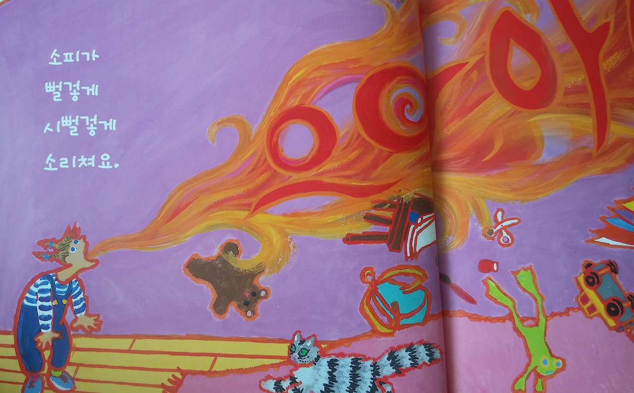 단순한 이야기지만 강렬한 원색과 직설적인 선으로 표현한 그림은 소피의 감정의 변화를 직관적으로 느낄 수 있다. 시뻘겋게 폭발하는 감정, 그리고 푸른색의 평온한 자연, 노란색의 따뜻함이 느껴지는 집과 마음이 가라앉은 소피. 네 살배기 딸도 이 책을 매우 좋아하는데, 그림과 색채를 통해 감각적으로 ‘화가 난다’는 것을 이해하고 소피에게 감정이입을 한다.