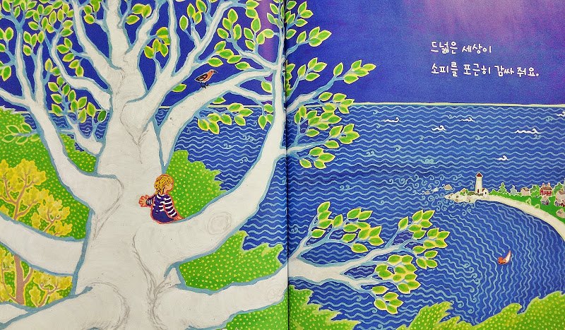 「소피가 화나면, 정말 정말 화나면」은 분노가 터져 나오는 순간과 그것이 사그라드는 과정의 감정선이 확실하게 드러난다. 한창 재미있게 가지고 놀던 고릴라 인형을 언니가 빼앗으며 소피의 화가 폭발한다. 마치 막 터지는 화산과 같은 소피의 마음. 쾅쾅 발을 구르고, 시뻘겋게 소리도 지르다가 밖으로 달려 나간다. 화가 가득 찬 상태로 달리고, 달리다 보니 어느 순간 서러움도 밀려온다. 잠깐 훌쩍 울다가, 너도밤나무 위로 올라가 드넓은 바다를 바라본다. 마치 드넓은 바다가 소피를 포근히 감싸주는 듯하다. 평온해진 마음으로 소피 다시 집으로 돌아온다. 무슨 일이 있었냐는 듯 가족들은 소피를 포근히 맞아준다. 소피도 이제 더는 화가 나지 않는다.