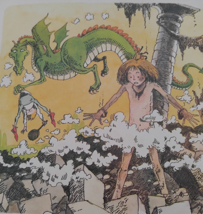 앨리자베스는 폐허가 된 길 위에서 종이봉지 한 장을 주워 입고 도날드를 구하러 길을 떠난다. 무서운 용을 찾아간 공주는 용을 살살 꼬드겨 추켜세우며 불길을 모두 내뿜고 세상을 몇 바퀴나 돌고 오게 만든다. 그리고 용이 지쳐 쓰러진 틈을 타 무사히 도날드 왕자를 구해낸다.
