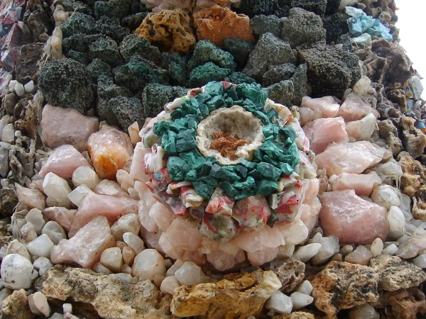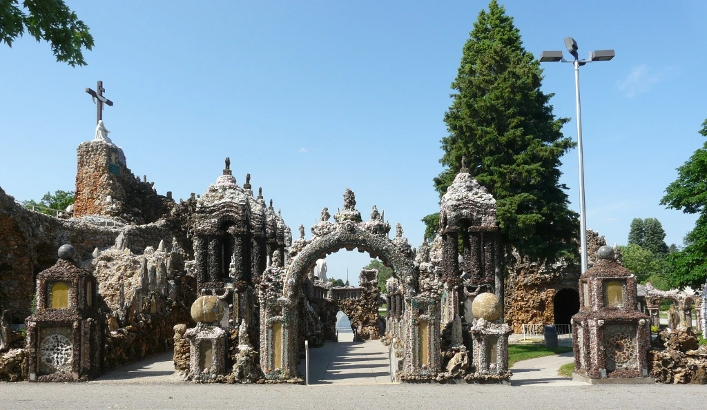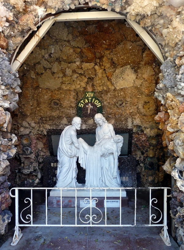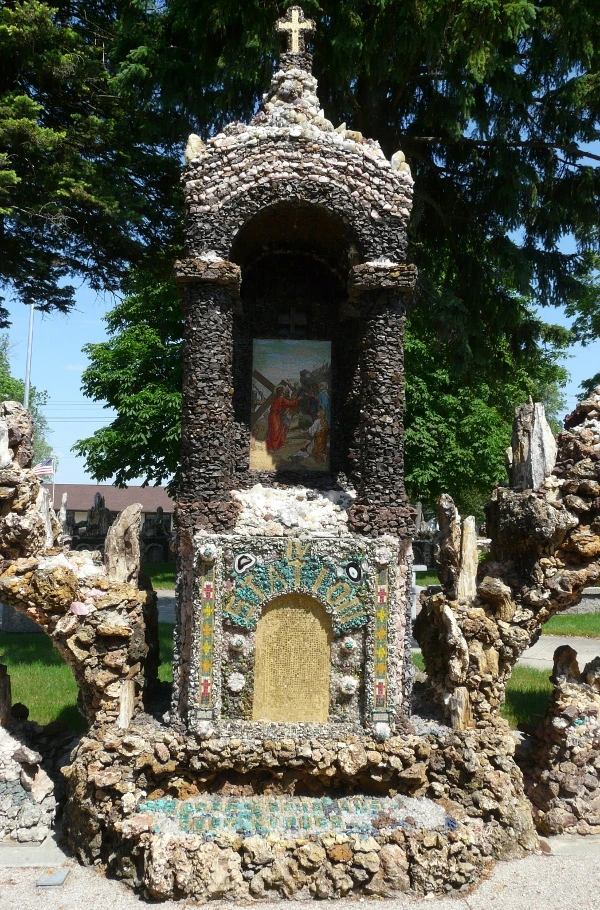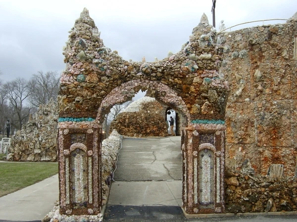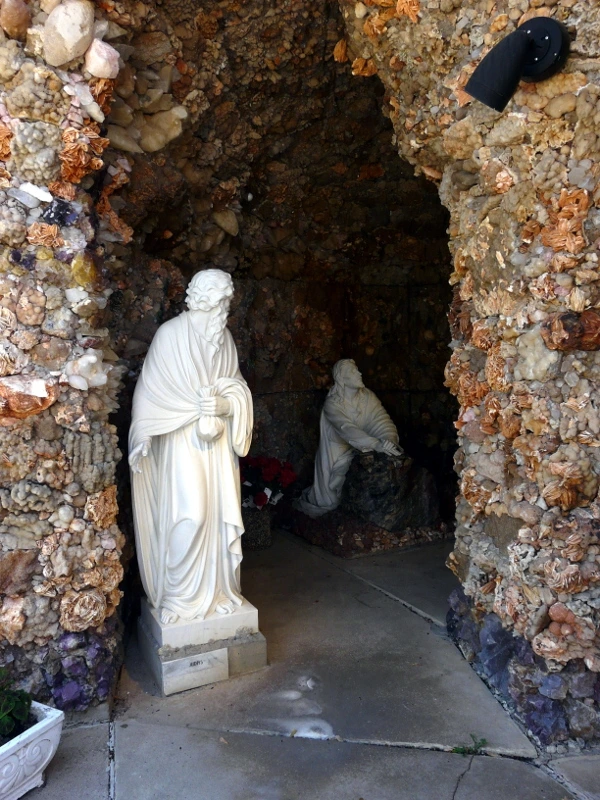 이런 곳에 있는 작은 마을에서 평생을 살아야 한다면 단순한 지형과 반복되는 일상을 벗어나 뭔가 새롭고 특이한 일을 해보고 싶다는 생각이 들 법도 하다. 1897 년에 위스컨신에서 사제서품을 받고 다음 해 웨스트벤드에 부임한 가톨릭 사제 폴 도버스틴 (Fr. Paul Dobberstein) 의 심정이 어쩌면 그랬는지도 모른다. 도버스틴 신부는 1954 년 선종할 때까지 웨스트 벤드에서 사목을 하며 천 명 이상의 사람에게 영세를 해주었는데, 그에게는 세계 각국의 진기한 암석과 광물을 모으는 취미가 있었다. 학생 시절에 폐렴으로 크게 아팠던 경험이 있는 도버스틴 신부는 자신이 낫게 된다면 성모 마리아를 기리는 성지를 짓겠다고 병상에서 맹서를 했다고 한다. 그리고 1912 년에 그 결심을 실행에 옮기기 위해 고등학교를 막 졸업한 매트 슈체렌스케 (Matt Szerensce) 라는 젊은이와 함께 구원의 동굴(Grotto of the Redemption)을 짓기 시작한다. 수십 년 동안 두 사람의 힘으로 동굴을 만들어 나가다가 1946 년 도버스틴 신부의 후임으로 부임한 루이스 그레빙 신부 (Fr. Louis Greving) 가 도버스틴 신부의 뒤를 이어 계속 구원의 동굴을 건축했다.