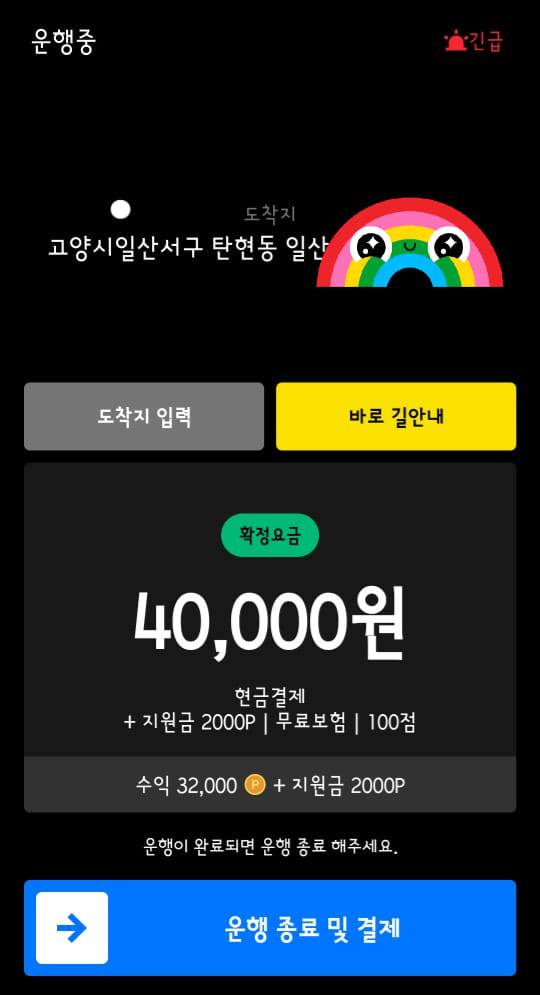 집으로 가는 콜을 잡았습니다. 오늘 일을 빨리 마칠 수 있게 됐습니다.