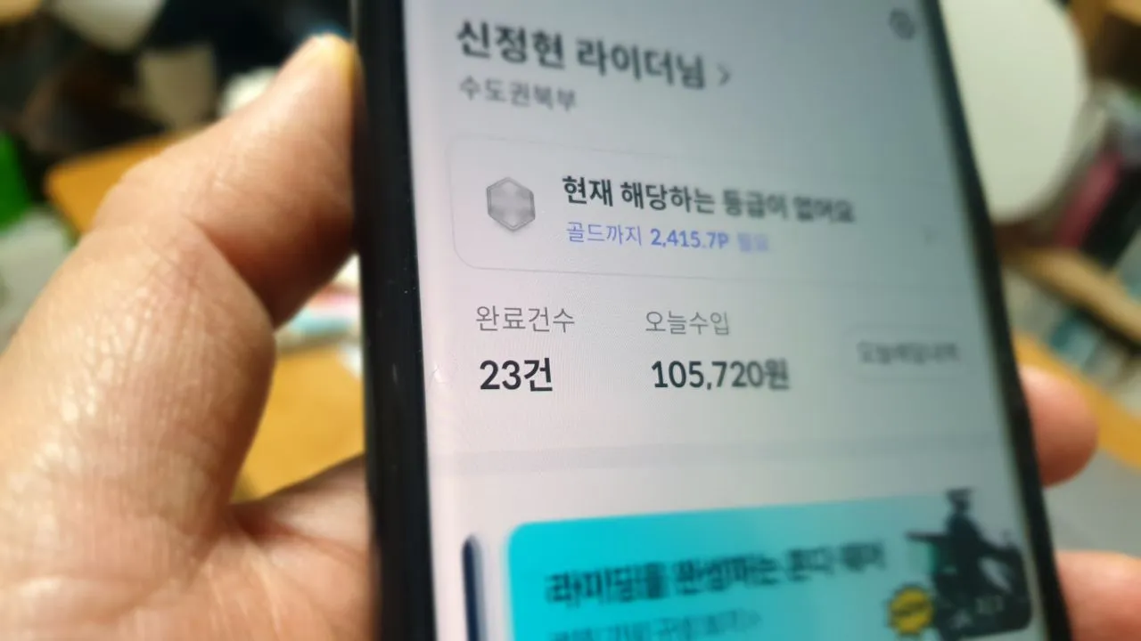 7시간 10분의 운전, 23건의 배달, 105,720원의 수입.