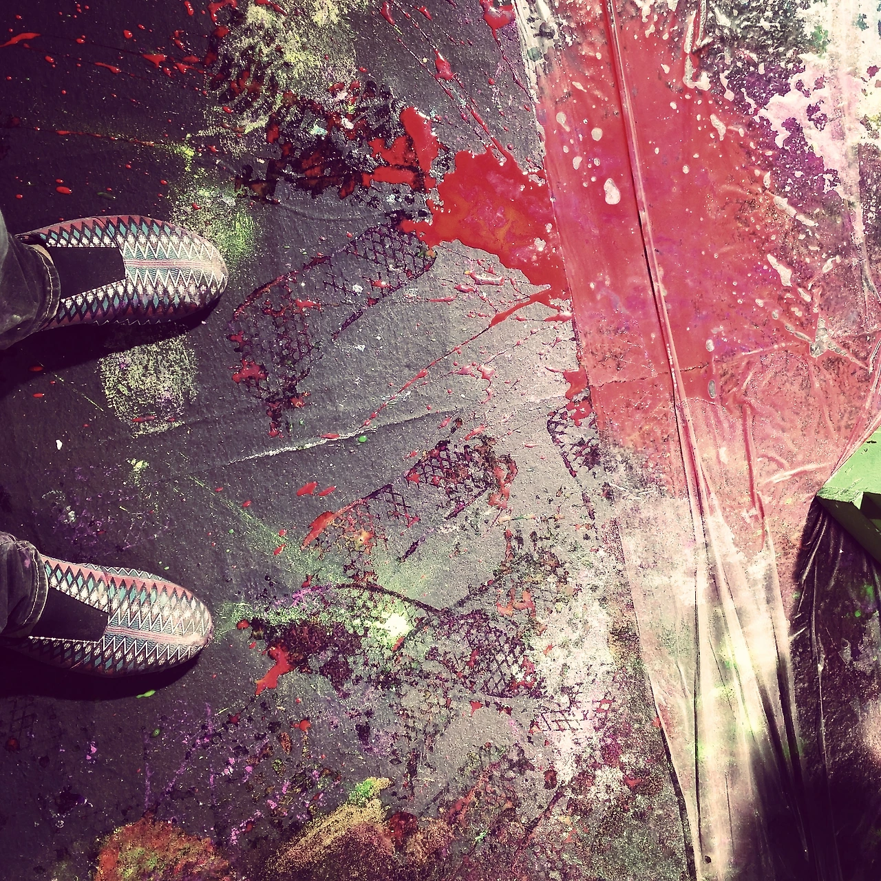 온갖 색깔의 안료를 뒤집어쓰며 고생한