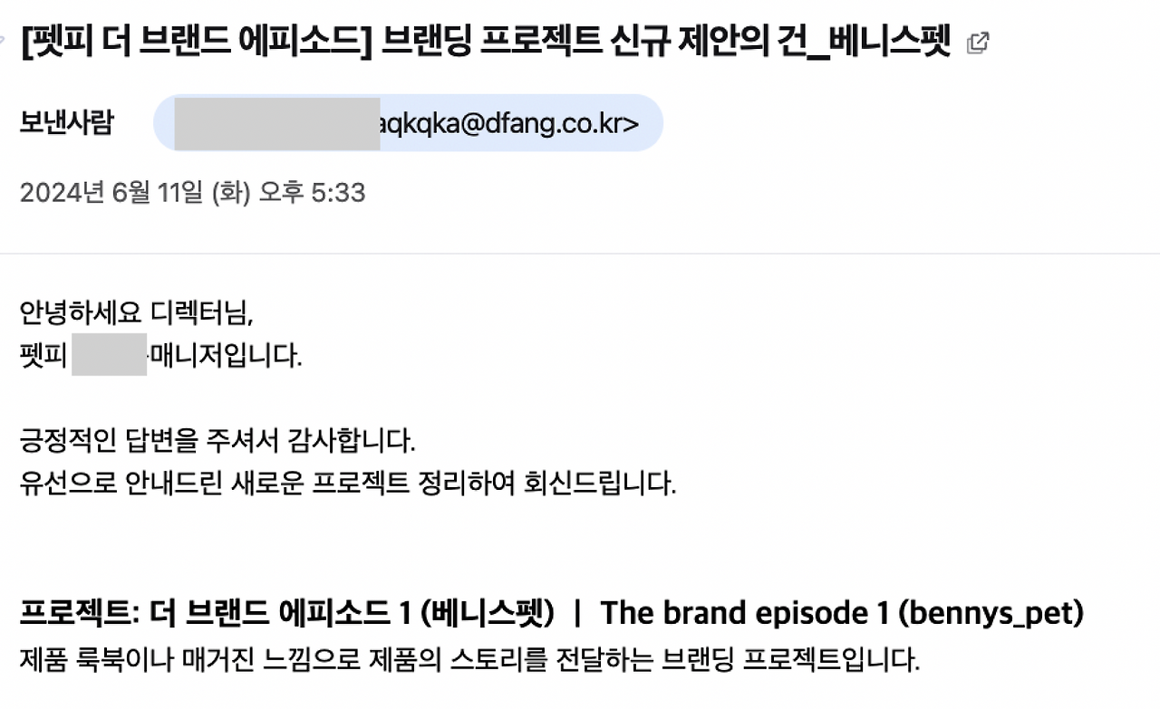 그래서 이 지점에 대해 솔직히 피드백을 드렸습니다. 펫피 마케팅 실장님께서도 이런 고충을 충분히 이해한다고 하셨고, 통화 말미에는 펫피 측에서 베니스펫 같은 작은 브랜드를 위해 기존과 조금 다른 형태의 마케팅 프로모션을 제안해 주시겠다고 하셨어요. 내부적으로 심도 있는 고민을 나누시겠다고 하셨고요. 지금 와서 하는 이야기지만 솔직히 큰 기대는 안 했습니다. 기업 이윤적인 측면에서 베니스펫이 드릴 베네핏이 너무 작다고 생각했었으니까요.