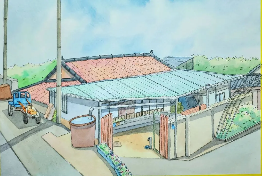 매곡면의 집은 길가 보다 한 층 낮게 자리 잡아 있다.