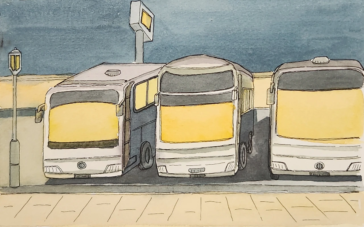 작은 불빛이 보이는 매표소에 들러 예약한 버스표를 받아 승강장으로 나섰다. 여행자는 우리 가족뿐이었다. 터미널 곳곳에 구멍이 숭숭 나고 페인트칠이 벗겨진 낡은 벽은 스산스러웠다. 버스가 오고 가며 사람들을 싣고 나른다. 여기서 문제가 발생했다. 버스가 승강장까지 오지 않고 근처에서 정차하는 것이었다.