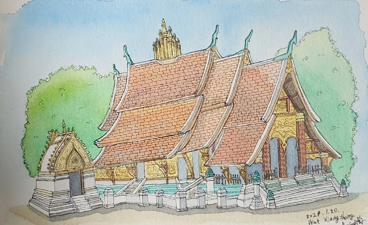 스님들이 길을 떠나고 신도들은 일상으로 돌아갔다. 나는 걸었다. 작은 마을이라 길을 잃어도 다시 돌아가면 되기에, 아니면 이곳의 사람들이 저를 데려다줄 것이기에 걱정할 필요가 없다. 녹음을 간직한 이름 모를 나무들이 전해주는 맑은 내음을 맡았다. 각양각색의 새들이 울부짖는 언어를 배경음악 삼았다. 한참을 걷다 보니 황금빛 사원에 다다랐다. 왓 씨엥통(Wat Xiengthong)이다. 순간 울컥했다. 왜 그랬는지는 모르겠다. 고통, 슬픔, 울분과는 다른 의미의 눈물이었음은 자명했다. 지금 내가 있는 공간과 모습, 내음 같은 것들이 나의 마음을 울렸다. 루앙프라방에 있는 지금이 감사했다.