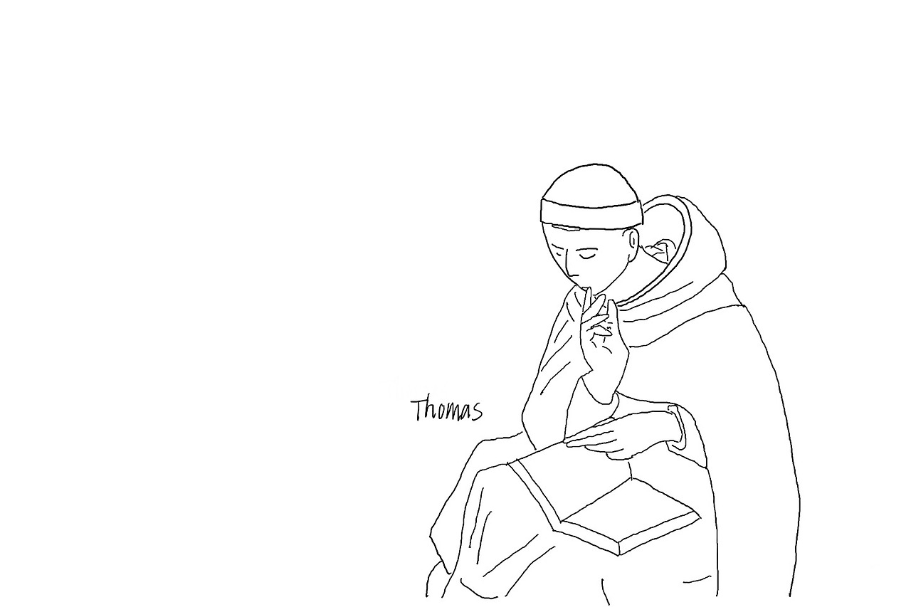 토마스가 수도원에 있는 그의 의자에 앉아 들려주는 이야기다. 그 답지 않게 이야기라니.