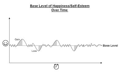 그러나 우리는 할 일이 있습니다. 행복과 불행은 외부에서 찾아옵니다. 막을 수는 없겠죠. 하지만 내가 행복과 불행을 받아들이는 방식은 보다 성숙해질 수 있습니다. 그 성숙함은 발전 가능합니다. 이런 생각을 반영한 그래프는 아래와 같습니다.