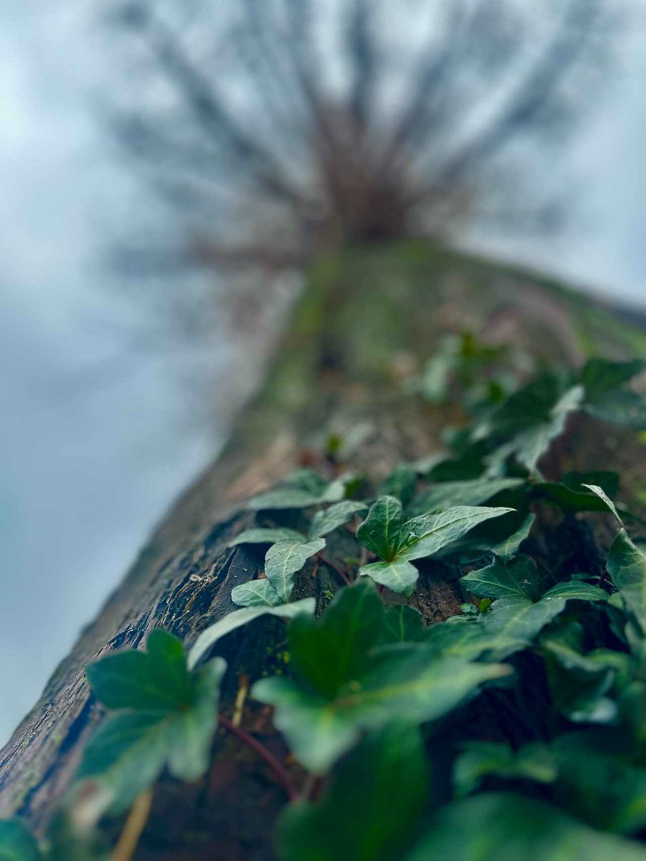 하얀 안개가 뒤덮고 있는 큰 나무들을 보고