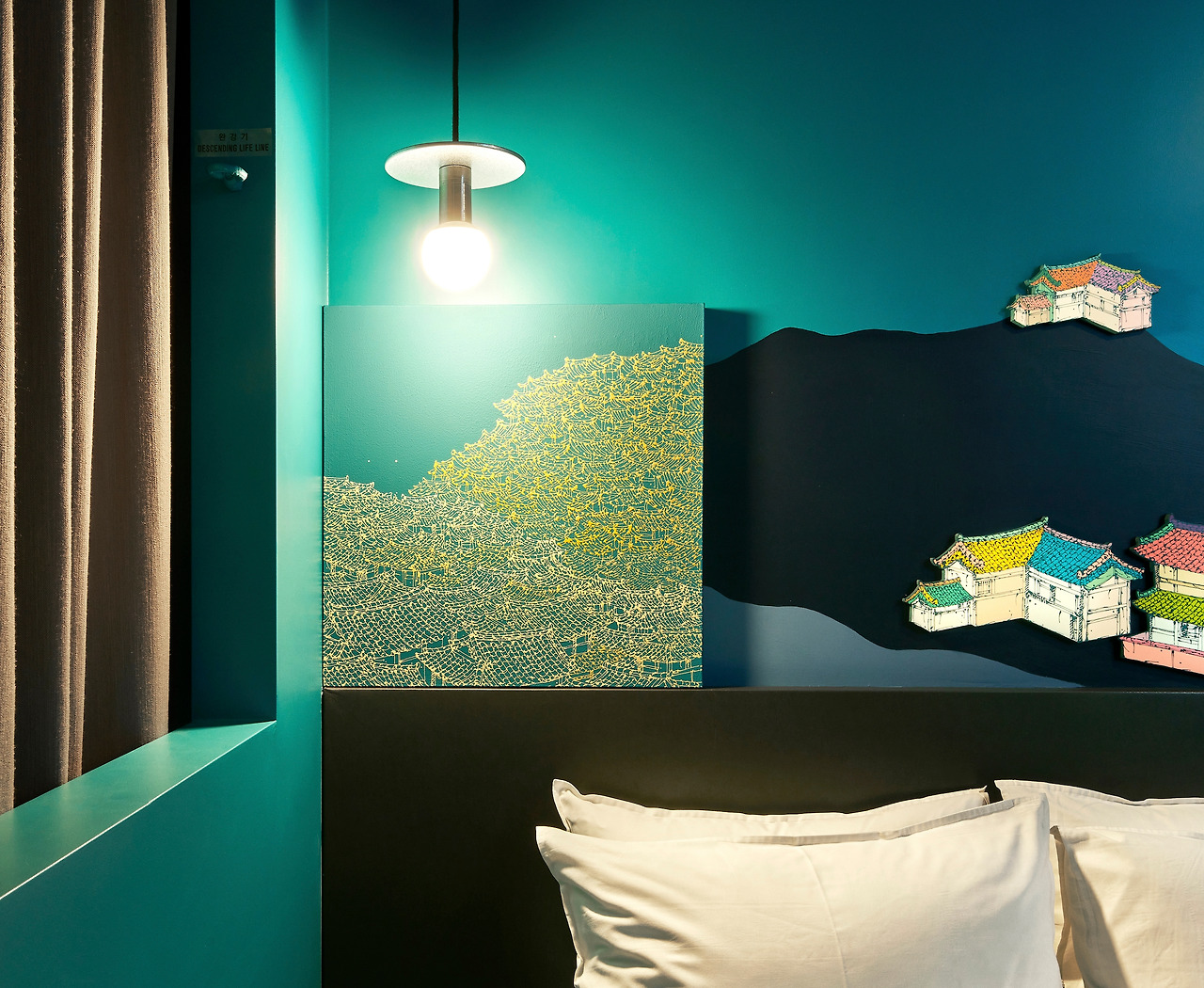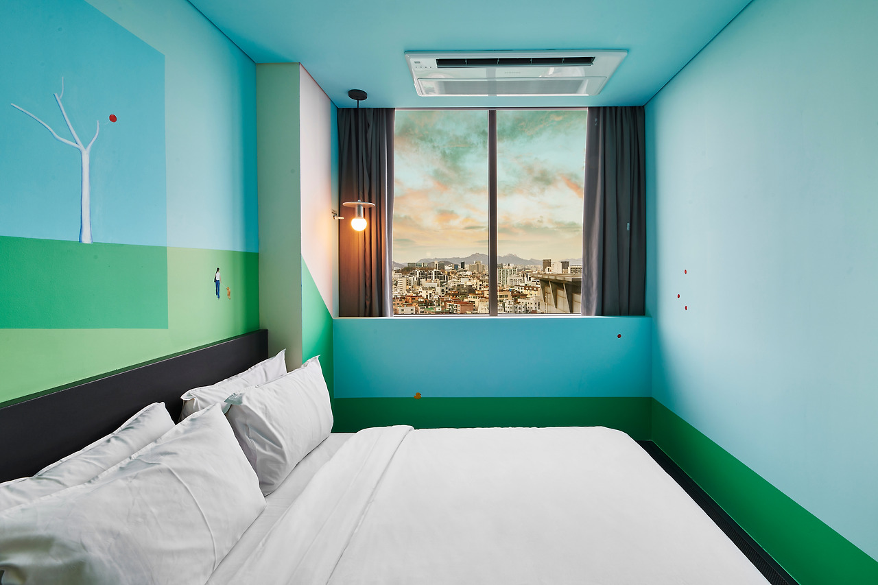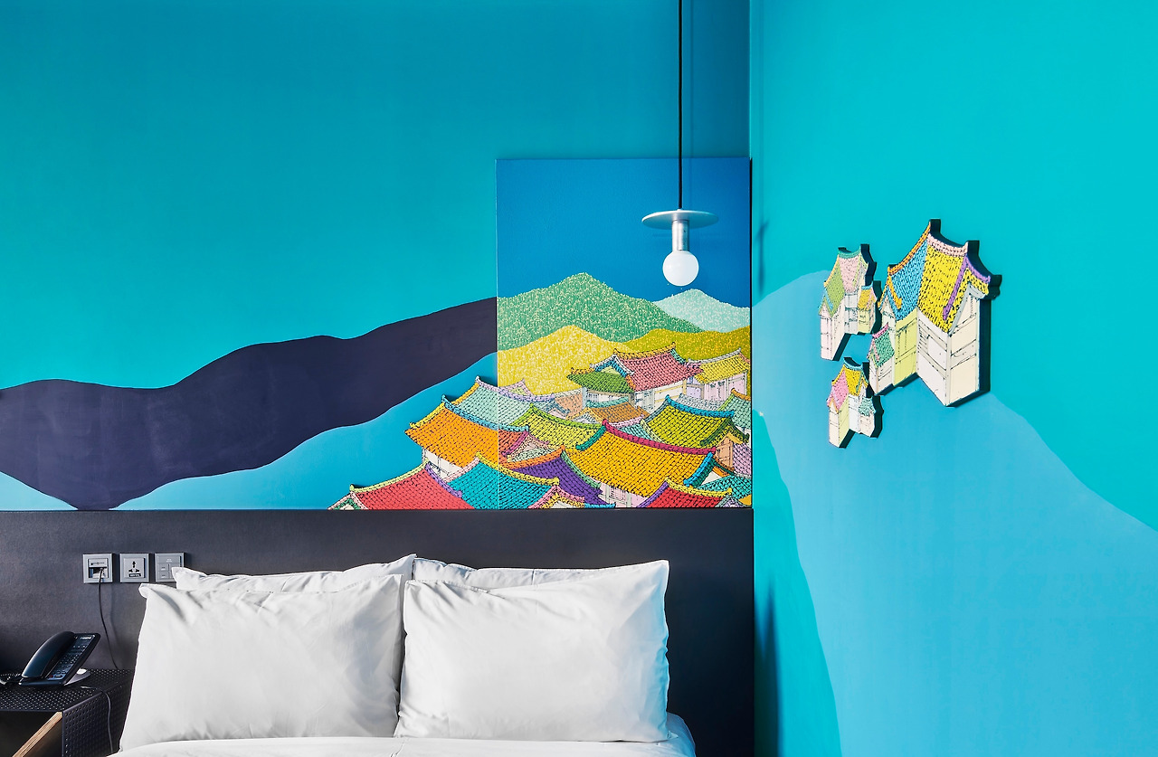 무채색의 도시에서도 곳곳에 다양한 색들이 자리하고 있듯, 우리의 삶이라는 여행에서도 다양한 색들을 찾길 바라는 마음을 객실 전체에 작품으로 담았습니다. 작가가 표현하는 세계와 인물을 가까이 들여다보는 재미를 객실에 머물며 경험하실 수 있어요.