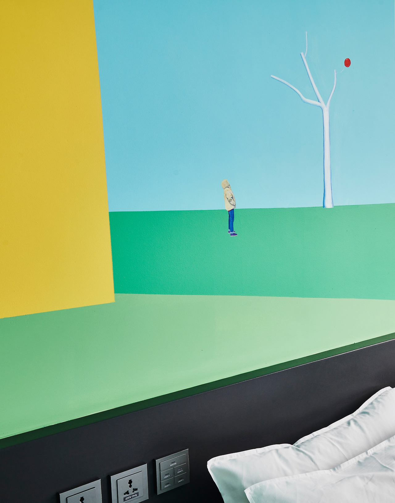 ‘다이브인 김보민 아트스테이 서울’ 객실을 작업한 김보민 작가는 삶 전반에서 발생하는 관계와 감정, 기억의 단면을 추성 언어를 그림으로 표현합니다. 섬세한 관찰력으로 동시대를 살아가는 사람들과 동물들 그리고 일상에 가까이하는 물건의 모습을 포착해 우리들의 관점을 환기할 수 있는 메시지를 던지고 있습니다.