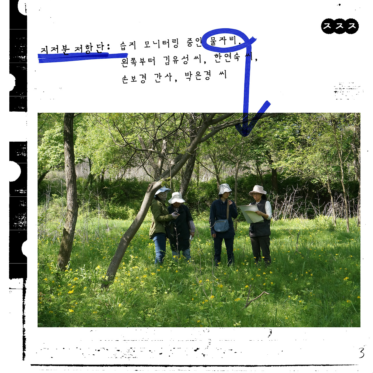 물자리에서 이곳을 모니터링하지 않았다면 은평구청, 북한산관리공단, 서울시 그 누구도 몰랐을 일이다. 그러니 관련 조치 또한 없었을 것이다. 이들은 어느샌가 진관동 습지를 지키는 감시자가 되어 있었다.
