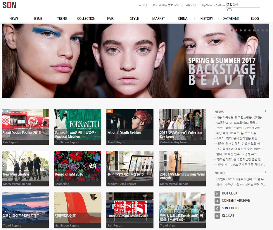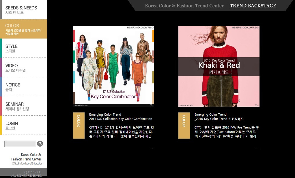 삼성패션연구소가 제공하는 온라인 패션 정보 사이트입니다. 패션과 라이프스타일, 컬러 등에 대한 자료를 확인할 수 있습니다. 유료 서비스를 하고 있으며 무료회원가입이 되지만 볼 수 있는 자료가 별로 없습니다.