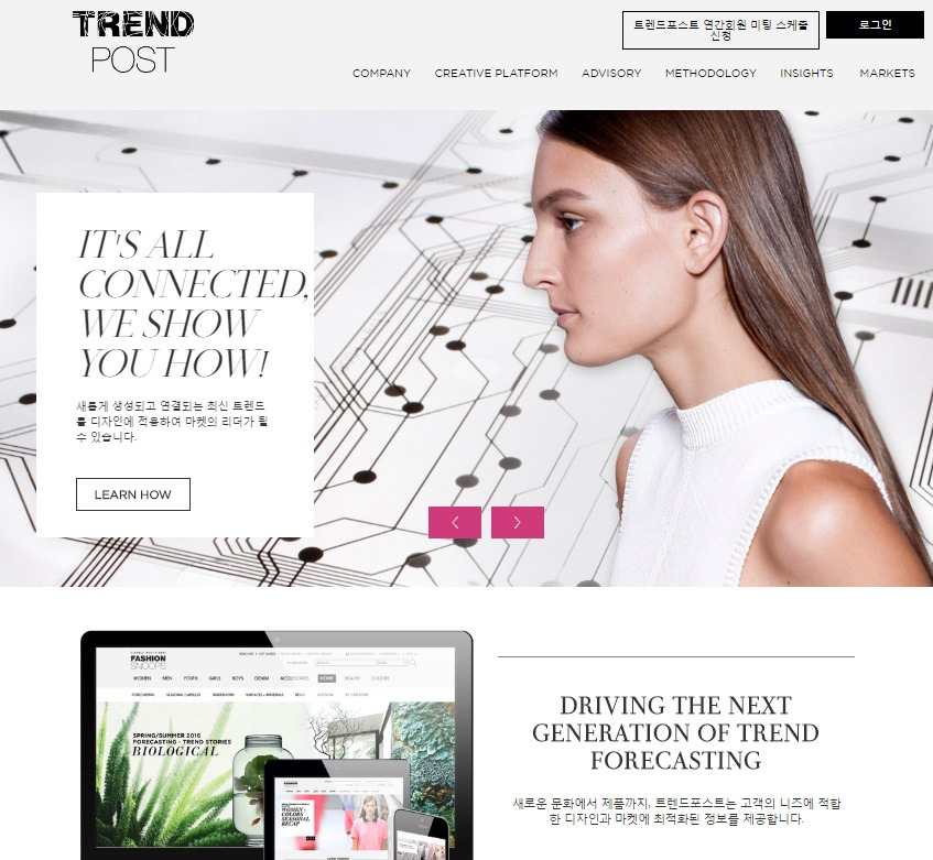 트렌드포스트는 트렌드 예측 정보 서비스와 컨설팅을 합니다. 50명의 전문가와 100명의 세계적인 분석 전문가를통해 소비자의 니즈(needs)와 시장의 트렌드에 대한 리포트를 합니다. 유료 서비스를 하고 있습니다.