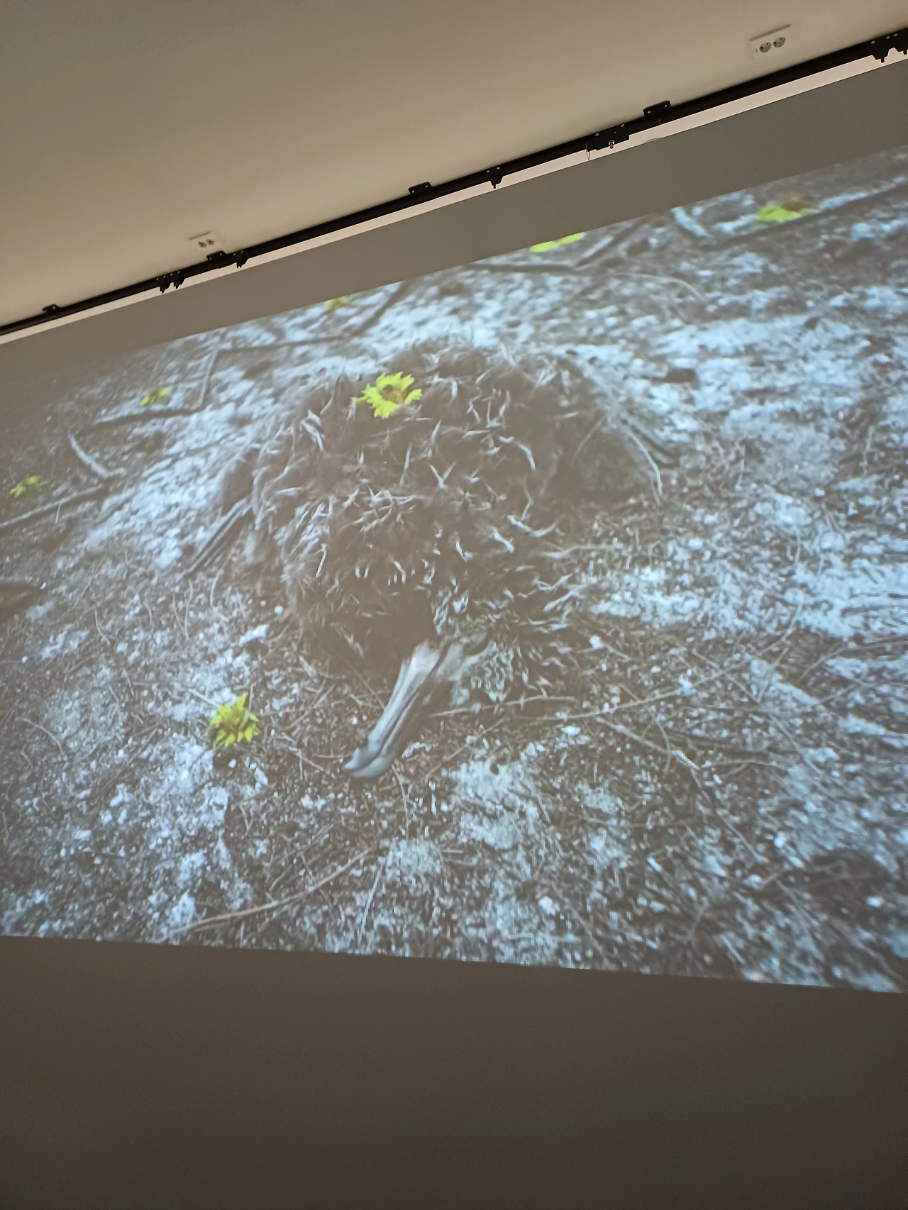 Chris Jordan(크리스 조던)의 1시간 38분 영상이 우리 모자를 울렸다. 미드웨이섬에서 수천 마리의 알바트로스가 산다. 고개를 위아래로 움직이며 노래를 부르는 한 쌍이 보이는 영상을 시작으로 아주 오랜 시간 앉아서 영상을 보았다. 아이가 아빠 손을 잡고 먼저 걸어갔고 나는 천천히 관람하는 편이라 뒤늦게 도착했다. 흰색 정육면체에 앉아 영상을 감상하는 아이 모습을 잠시 뿌듯해하며 사진을 찍었다. 3년째 나를 따라 미술관을 다니는 6세 아이는 어느새 조용하고 매너 좋은 관람자로 성장해 있었다. 정육면체 작은 의자에 앉은 아이 옆 직육면체 의자에 나도 앉았다.