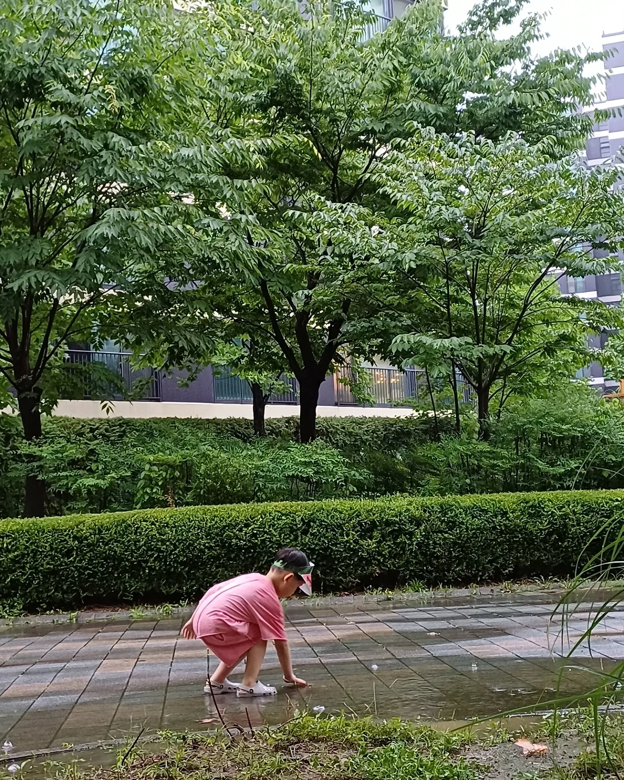 빗속에서 아이들은 새로운 야생 생물들을 볼 수 있고, 비가 오면 세상의 향기와 느낌이 달라집니다. 아이들의 감각을 사로잡는 것은 매우 중요합니다. (필자 번역)