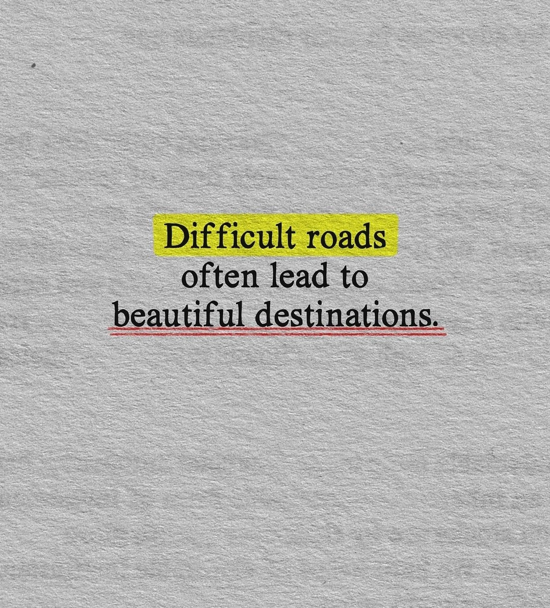 Difficult roads often lead to beautiful destinations. _Unknown 어려운 길은 가끔 아름다운 목적지로 이끈다