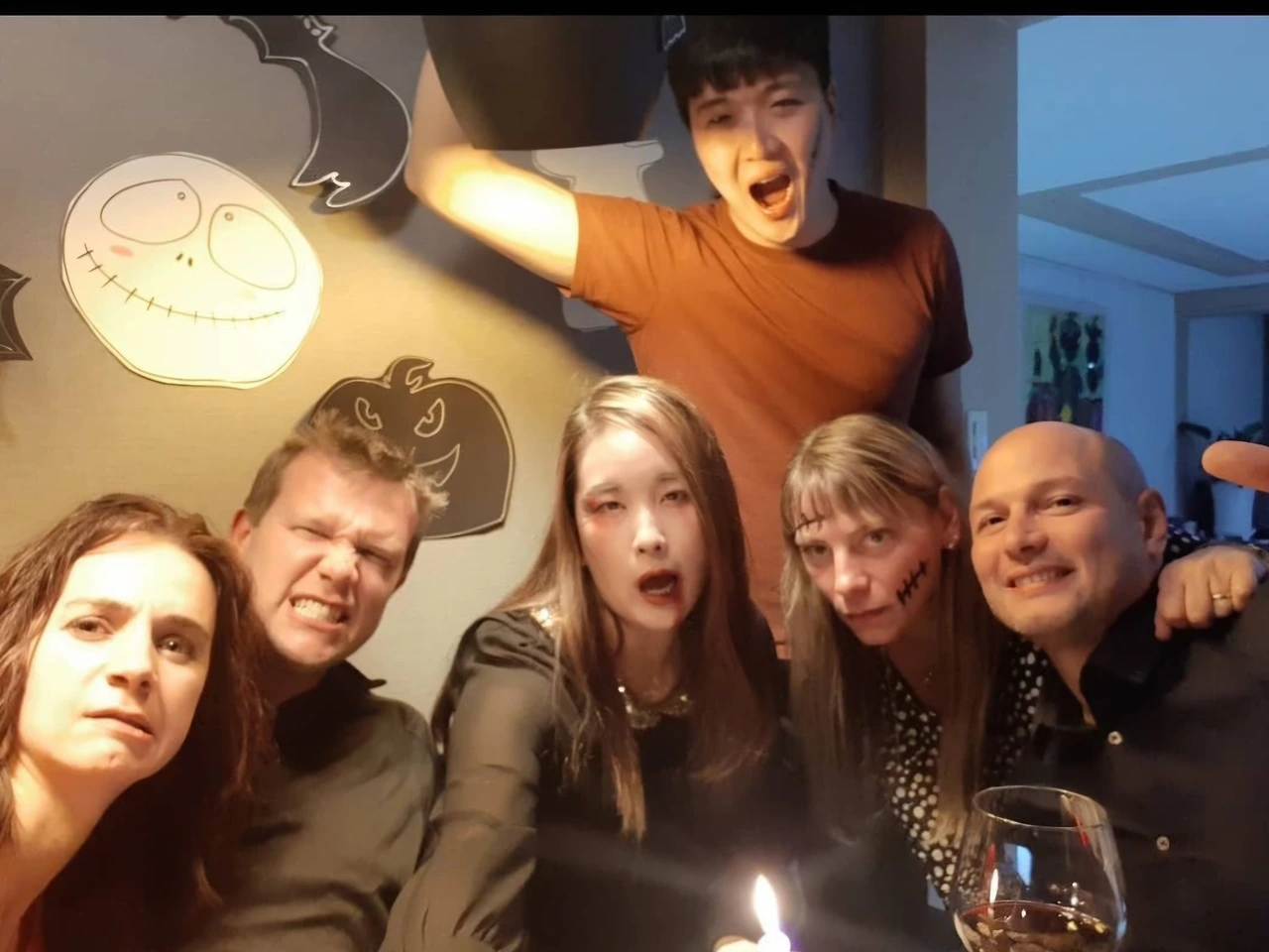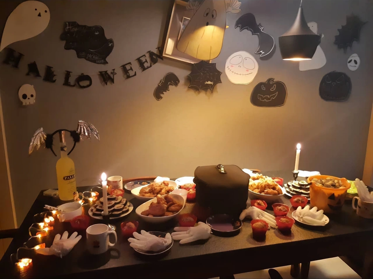 (사진6-7) 친구들과 할로윈파티 하던 식탁 그리고 그날 친구들과 함께