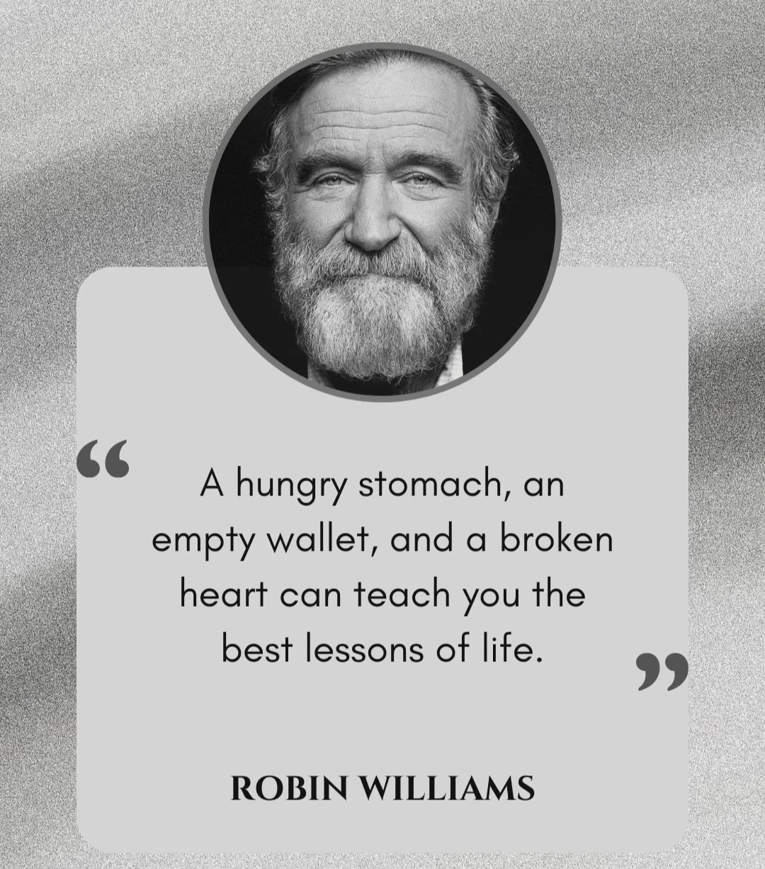 A hungry stomach, an empty wallet, and a broken heart can teach you the best lessons of life. _ Robin Williams
