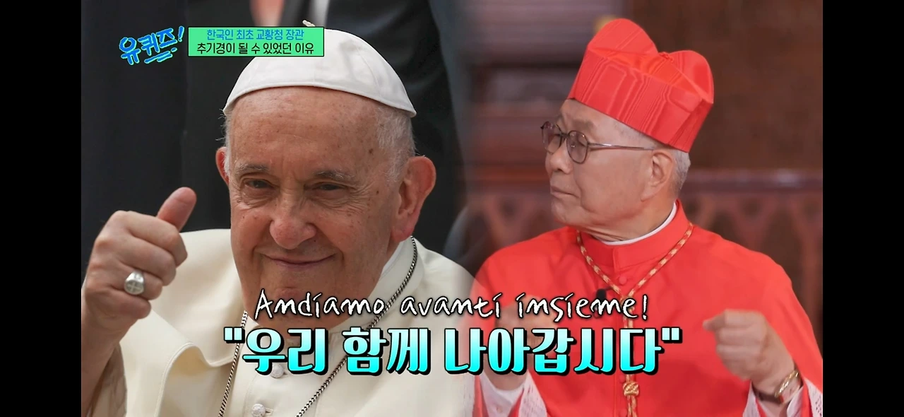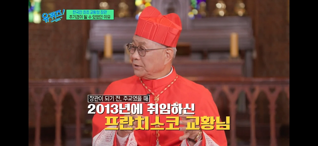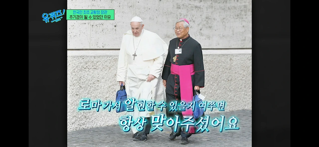 교황청에서 한 달 정도 휴가를 나온 시기에 유퀴즈 촬영에 응해 주셨다. 유퀴즈에 나왔던 인도 쌍둥이 신부님들 아룰 제임스 & 아룰 하비에르 사제님, 두봉 주교님께도 자문을 구하셨다. 굉장히 유쾌하신 추기경님이시다. 추기경으로 서임되신 2년 전부터 유퀴즈에서 꾸준히 연락을 드린 덕분이다. 이번 휴가로 촬영에 응해 주셨다고 한다.