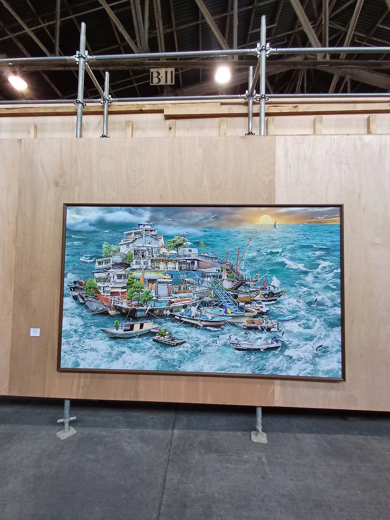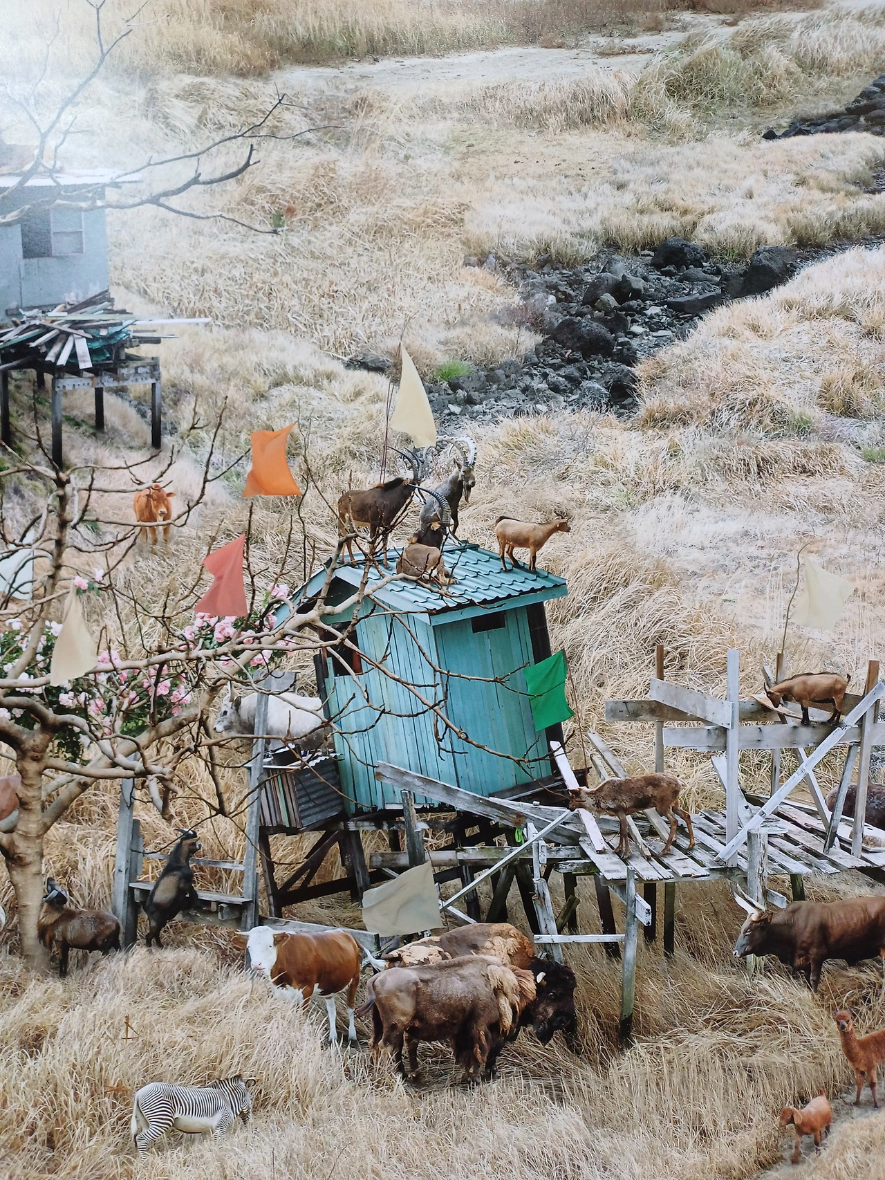 나는 현실주의자다. 나는 늘 내 앞에 닥친 어려움에 몰두한다. 나의 어려움은 사람과의 관계로부터 생긴다. 그러나 해결하기보단 참고 버티는 일이 대부분이다. 나의 리얼리티에는 언제나 괴로움suffering이 따라다닌다. 나는 현실에서 벗어나기 위해 상상의 언어가 필요했다. 그렇게 현실이 변하여 상상이 되고, 다시 상상은 현실로 해석된다. 나의 콜라주 작업은 이런 방법으로 개인과 사회의 정신상태를 심리학적으로 건드리고 있다. 나의 상상을 이미지로 만드는 과정은 현실만큼 고되다. 각 계절마다 전국을 돌며 필요한 오브제를 촬영하고 수집하고 정리한 뒤 매일 10시간 이상 포토샵 작업을 한다. 대상을 정성껏 오려 작업을 만들어 가는 과정은 작은 퀼트 조각을 꿰매 큰 이불을 만드는 것과 유사하다. 또한 내 작업 속 주인공을 이해하는 명상의 시간이 되기도 한다. 작업이 완성되면 현실의 문제도 해결 되어져 있다. 1,000개 이상의 복잡한 레이어와 수년간의 노력이 담긴 나의 콜라주는 상상력을 통해 관계를 형성하는 나만의 독특한 방식이다.