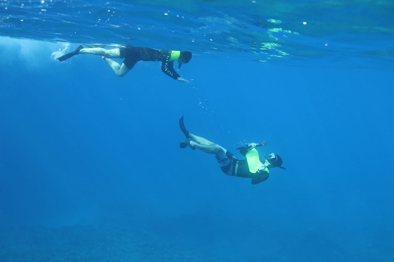 숨을 죽이고 한참을 바라보다, 저는 그들과 좀 더 가까이 가고 싶다는 생각이 들었습니다. 그것은 아내도 마찬가지 였나봅니다. 우리는 여행을 마치고 돌아오자마자 누가 먼저랄 것도 없이 프리다이빙을 배워보자고 했죠.