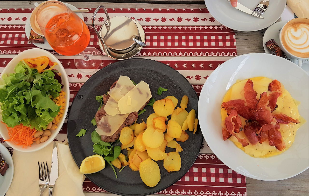 더욱더 감동적인 것은 옆에 있던 레스토랑이었다. 음식의 맛은 중요치 않아 보였다. 이런 풍경을 보면서 식사를 할 수 있다니. 화보 같은 스위스 알프스의 레스토랑이 부럽지 않다. 우리도 아마 각잡고 사진 찍으면 그런 사진 찍을 수도 있을 것 같다. (자리가 좀 안쪽이어서 아쉬웠지만.)