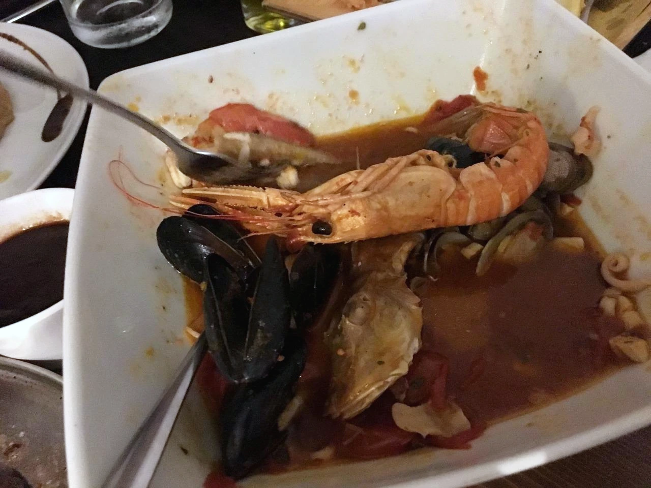 메인 요리 중에 가장 먼저 나온 해산물 수프. 오옷?! 이거 냄새가 심상치 않은데? 주문한 Sophy가 한 숟갈 국물 수프를 떠먹더니 눈이 똥그래졌다. 다들 기대의 눈빛을 반짝이며 한 숟갈씩 떠먹었다. 오오! 이것은 해물탕이잖아? 오늘 같은 날에 완전 딱인 음식인걸?!