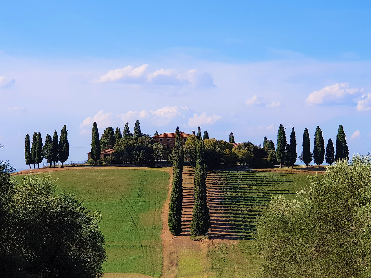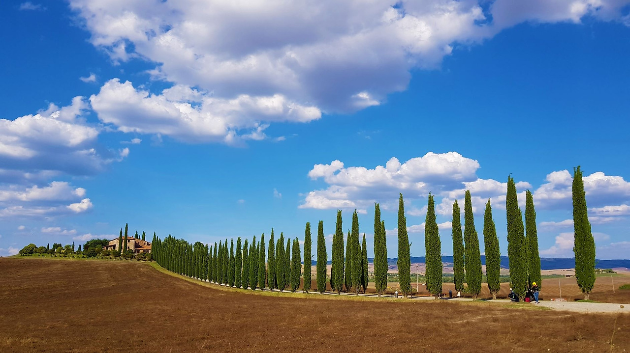 정말 딱 그 지점이 아니면 사진이 그렇게 나오지 않는 식이었다. (조금만 옆으로 가도 방해물이 있다.) 하지만, 그래도 8월의 토스카나는 이미 추수가 끝나서 찬란한 녹색의 언덕을 찍을 수는 없었다.