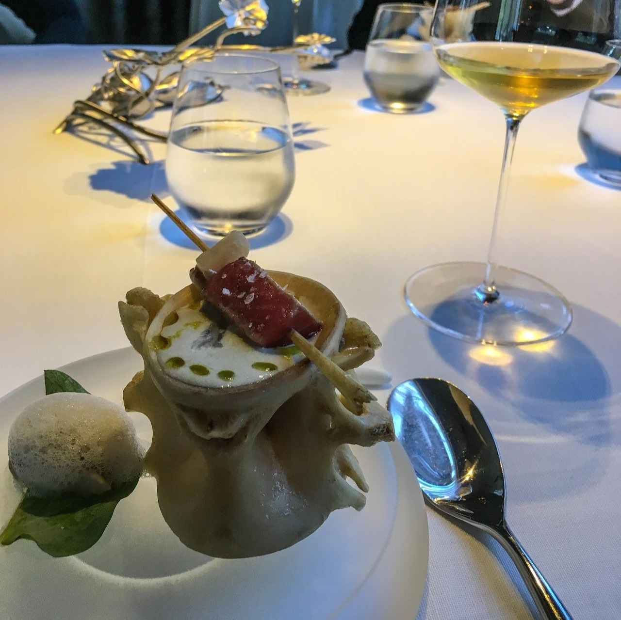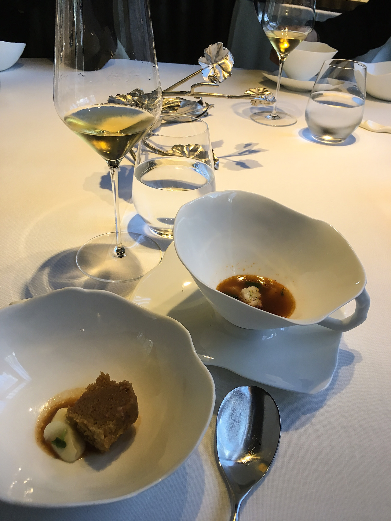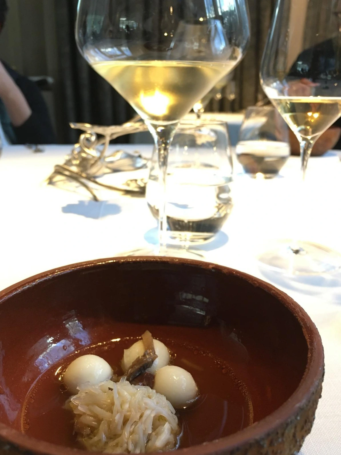 나오는 음식들은 해산물이 더해진 요리가 많고, 그렇지 않더라도 향이 좀 강한 편이다. 페어링 해서 나오는 와인들도 와인 자체의 맛과 향이 독특하게 도드라지는 편이라, 어제의 Lasarte와 비교가 된다.
