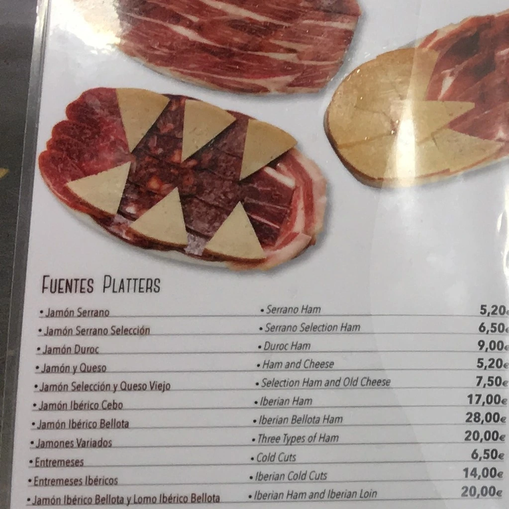 배가 고프지는 않았지만, 맛을 봐야 한다는 강박에 이것저것 시켜봤다. 생각보다 큰 가격 차이에 주저했지만, 왜 이렇게 가격 차이가 큰지 궁금하지 않냐는 이민영 가이드의 말릴 수 없는 호기심에 비싼 것(Jamón Ibérico)과 싼 것(Jamón Serrano)을 같이 시켜봤다. 오, 이런! 안 먹어 봤으면 하몬 선택의 기준이 가격이 될 뻔했군. 비싼 하몬이 다 이유가 있다는 걸 여실히 느끼게 해 주었다.