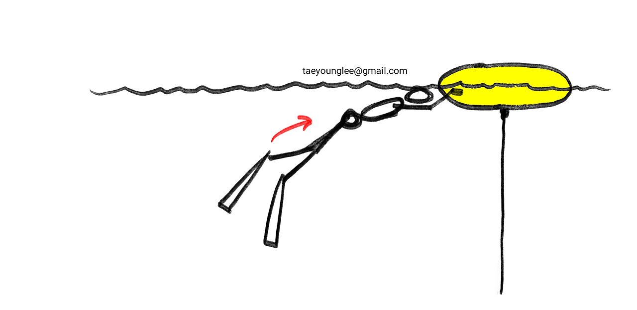 많은 경우 다이버의 하체는 가라앉는 편입니다. 심하면 거의 선 자세가 되기도 하구요.
