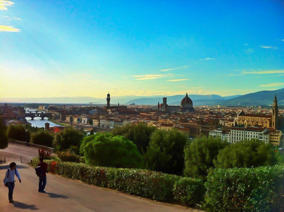 Sophy의 계획에 따라 뜨거운 햇빛을 맞아가며 버스를 타고 언덕을 올라갔다. 미켈란젤로 언덕이라 불리는 곳. 조금씩 붉은빛이 도는 하늘을 배경으로 피렌체를 내려다보니, 이것이 과연 피렌체를 다녀온 사람들이 그리워하는 풍경이겠다 싶다.