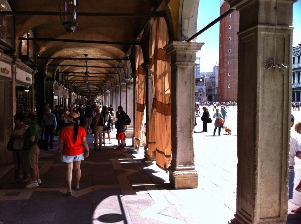 우리는 그늘 회랑을 따라 산마르코 광장을 둘러싼 상점과 카페들을 구경했다.