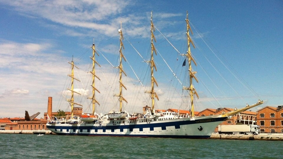 조금 넓은 바다로 나오자 등장하는 거대한 크루즈선! 아니, 마을보다 큰 배가 이곳을 들어오는구나?!