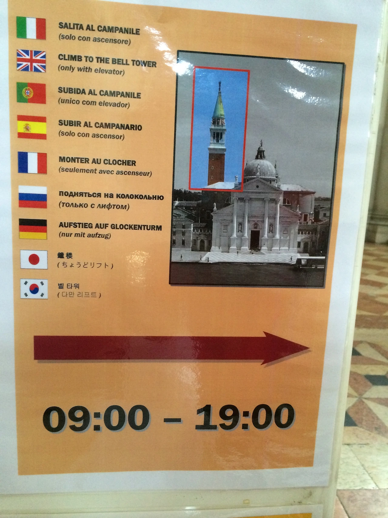 그런데 그렇게까지 계획을 세우진 않았고, 베네치아에 온 것만도 좋았으니까. 그래도 마냥 골목길만 돌아다니기는 아까워 어딘가 갈 곳을 찾았다. 그래, 저기 대운하 건너편에 있는 성당 꼭대기의 종탑에서 베네치아를 내려볼 수 있다고 하니 거기를 가 보자.