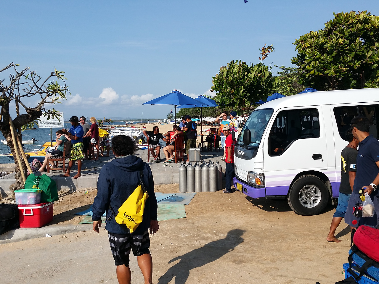 다시 미니 버스를 타고 몇 분 안 가서 우리가 다이빙을 시작할 Sanur 비치에 도착했다.