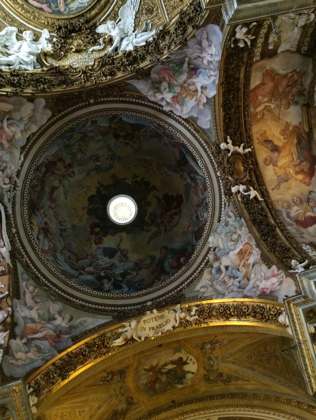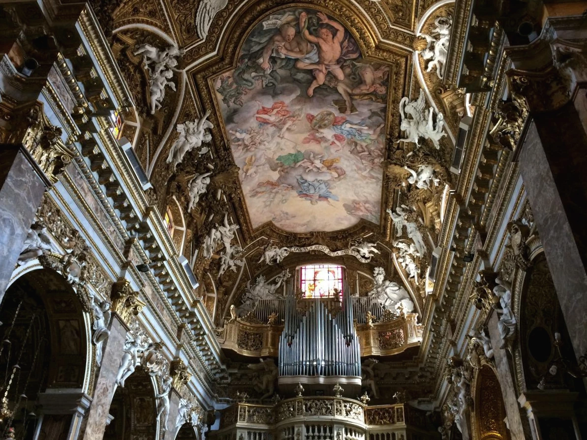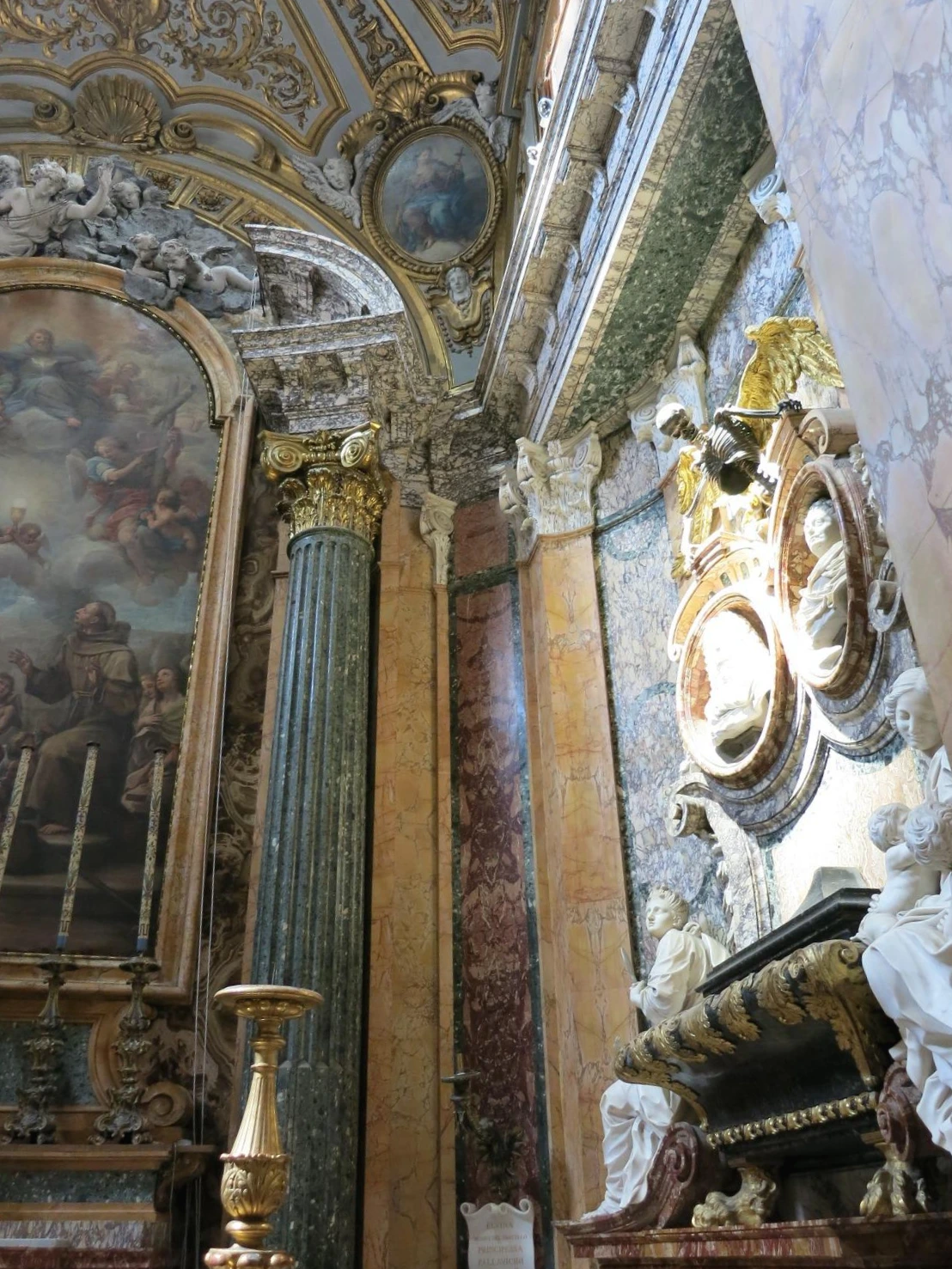 입장이 시작되고, 줄줄이 들어가는 입장객들. 여기도 큰 성당이 아니라 내부 규모는 비교적 작았다. 하지만 그 작은 공간 안에 화려함과 정교함이 응축되어 있는 것 같았다. 우리는 "환희에 찬 테레사 성녀"를 보려고 왔지만, 그 맞은편과 천장과 벽 곳곳에 붙은 조각상들도 위용이 대단했다.