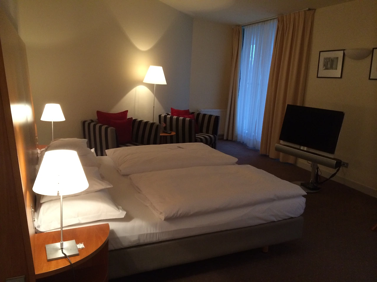 "몰라, 그냥 스탠더드룸으로 예약했을 걸?"이라고 Sophy가 대답했지만, 스탠더드룸 치고는 방 크기도 그렇고 인테리어도 은근히 고급스러워 보인다. 걷어 두지 않은 커튼 틈 사이를 보니 테라스까지 딸려 있다. 뭐야, 테라스가 우리 집 테라스 두 배는 돼 보이잖아?
