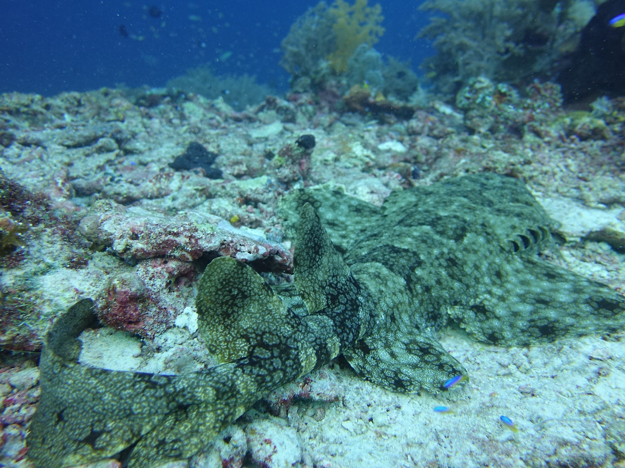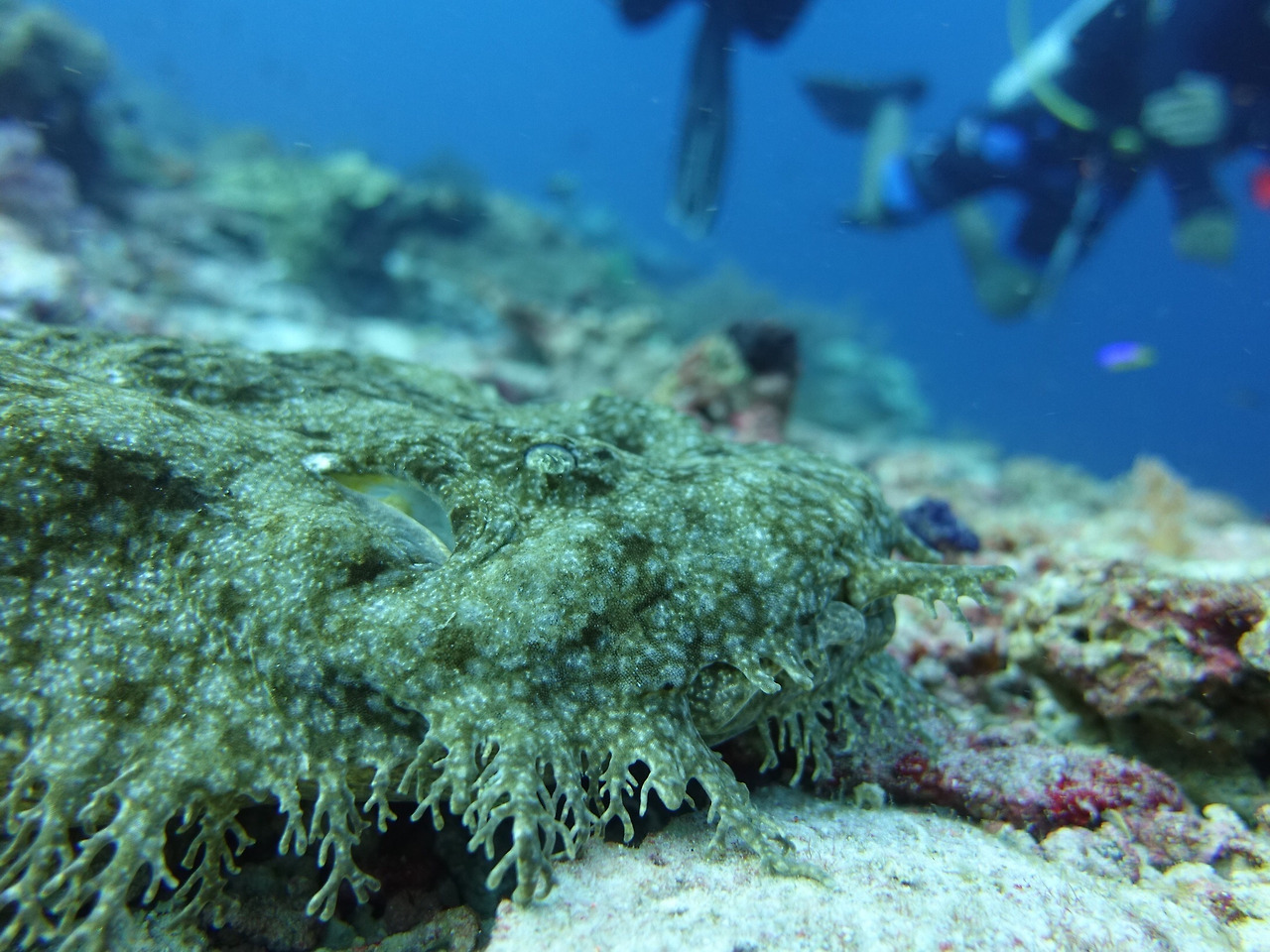 Wobbegong shark의 뒷모습. 가만히 사진만 찍으면 이 녀석도 별 움직임 없이 아가미만 펄럭대고 있다.