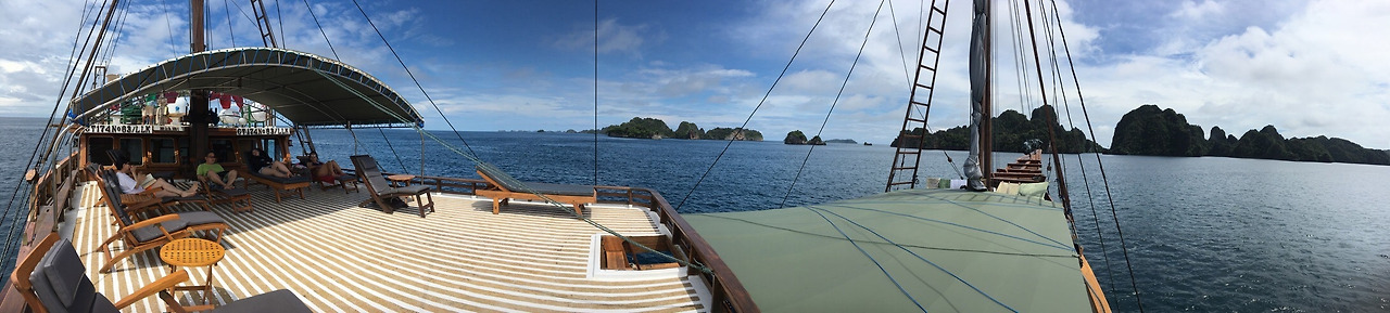 탐보라(Tambora)라는 고풍스러운 외양의 배는 지난번의 크고 럭셔리하던 배와는 달리, 삐걱대는 소리도 나는 목조 외관의 배다. 그렇다고 낡았다는 느낌보다는 운치 있다는 말이 어울리는 매력이 있다.
