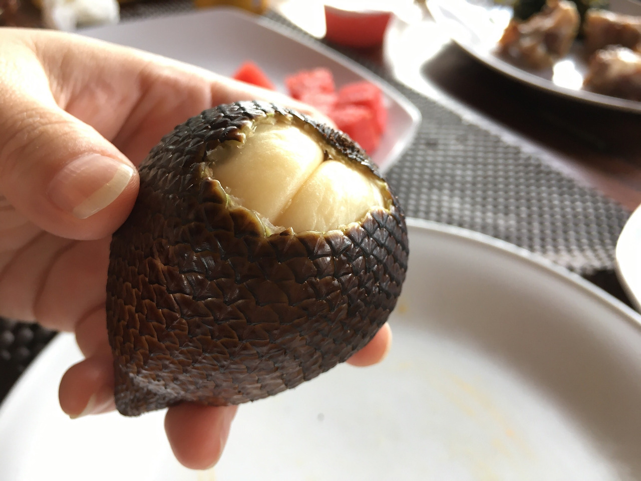 이건 snake fruit이라는 이름의 과일. 꼭 마늘 같은 외형과 식감을 가졌는데 아주 살짝 달콤하다.