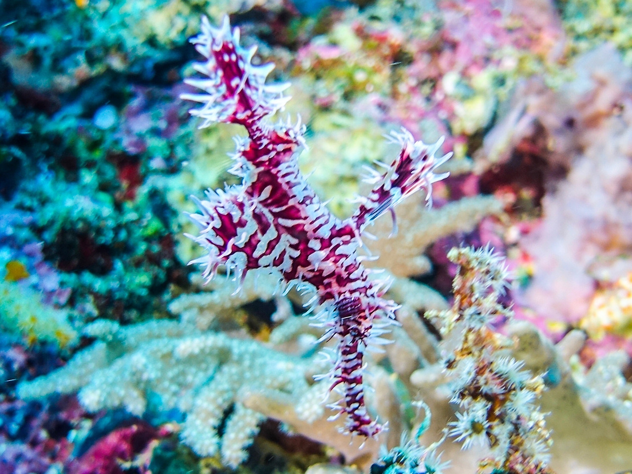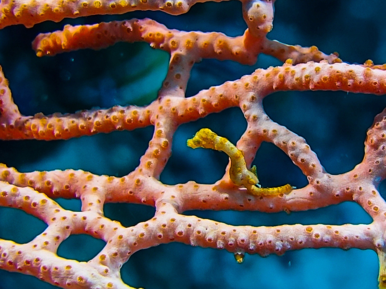 Denise's pygmy sea horse. 색보정을 조금 해서 그나마 보이는데, 맨눈으로 찾기가 쉽지 않은 녀석이다.