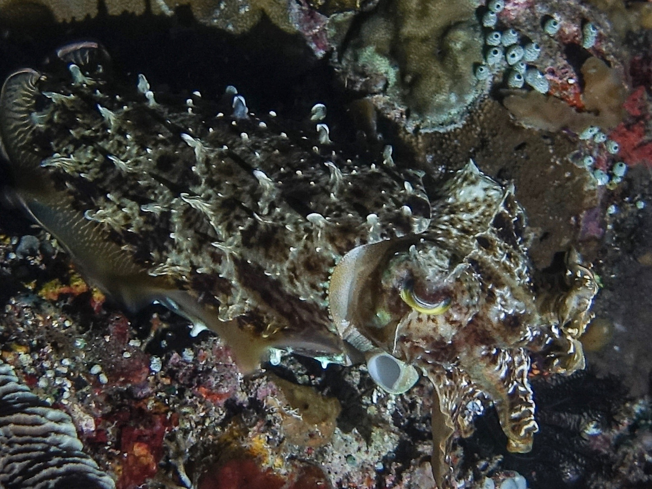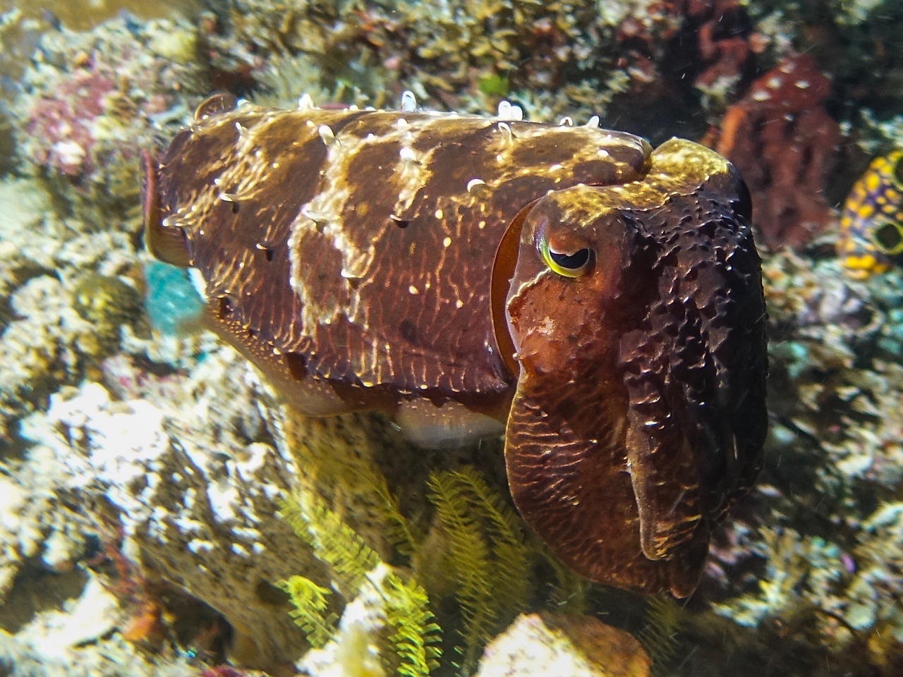 Cuttlefish(갑오징어). 조금 화가 났는지 몸을 삐죽 세웠다. 얘네는 어찌나 색깔과 피부 변화가 종잡을 수 없는지.