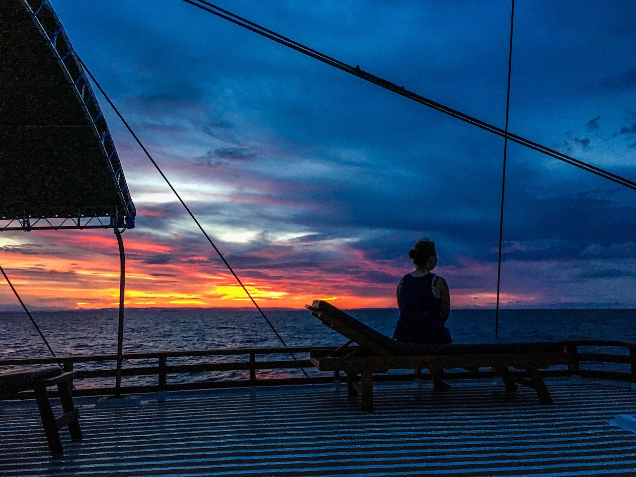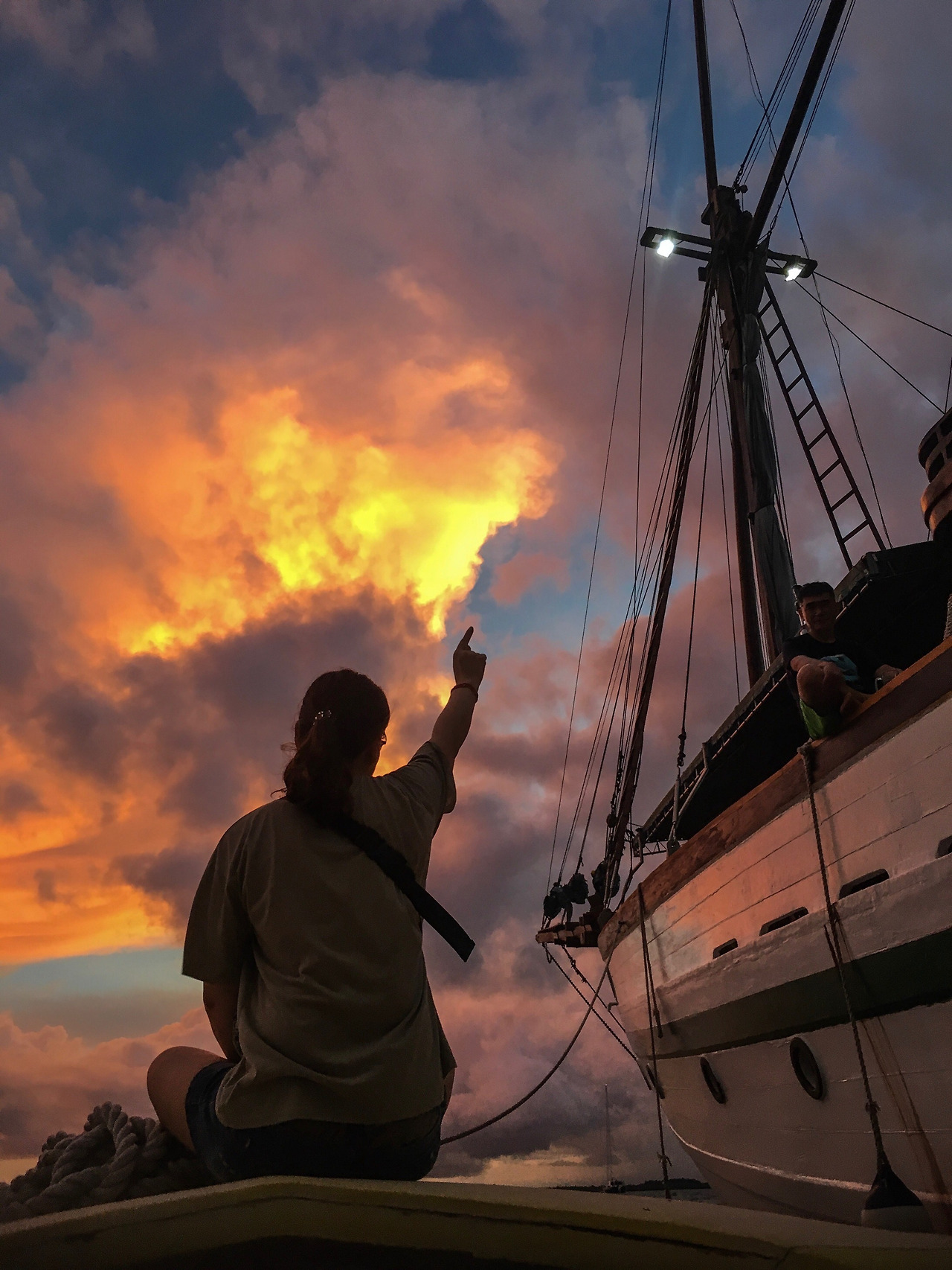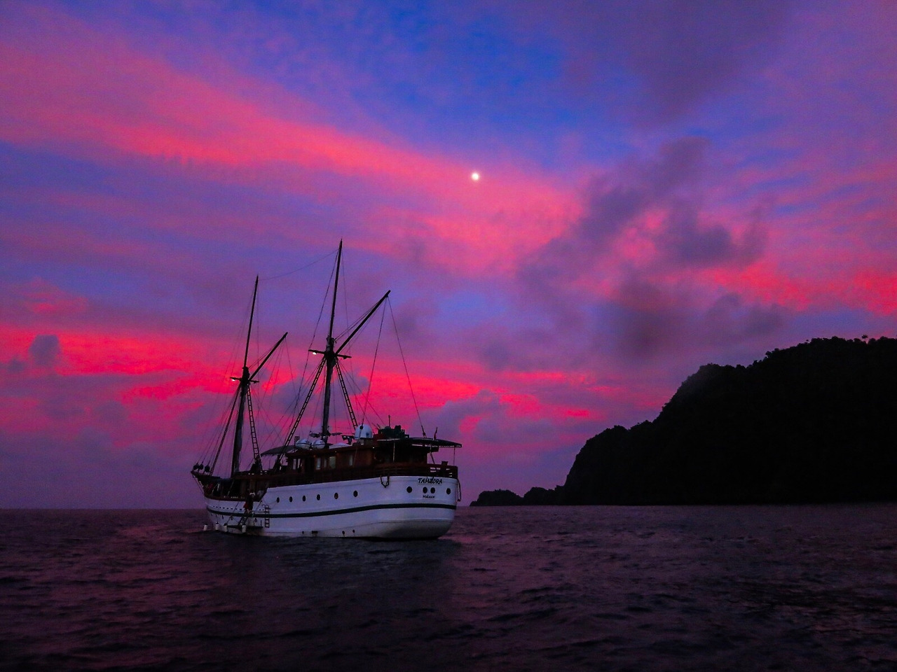 오후의 마지막 다이빙을 마치고 돌아오는 길에 석양을 배경으로 보이던 Tambora