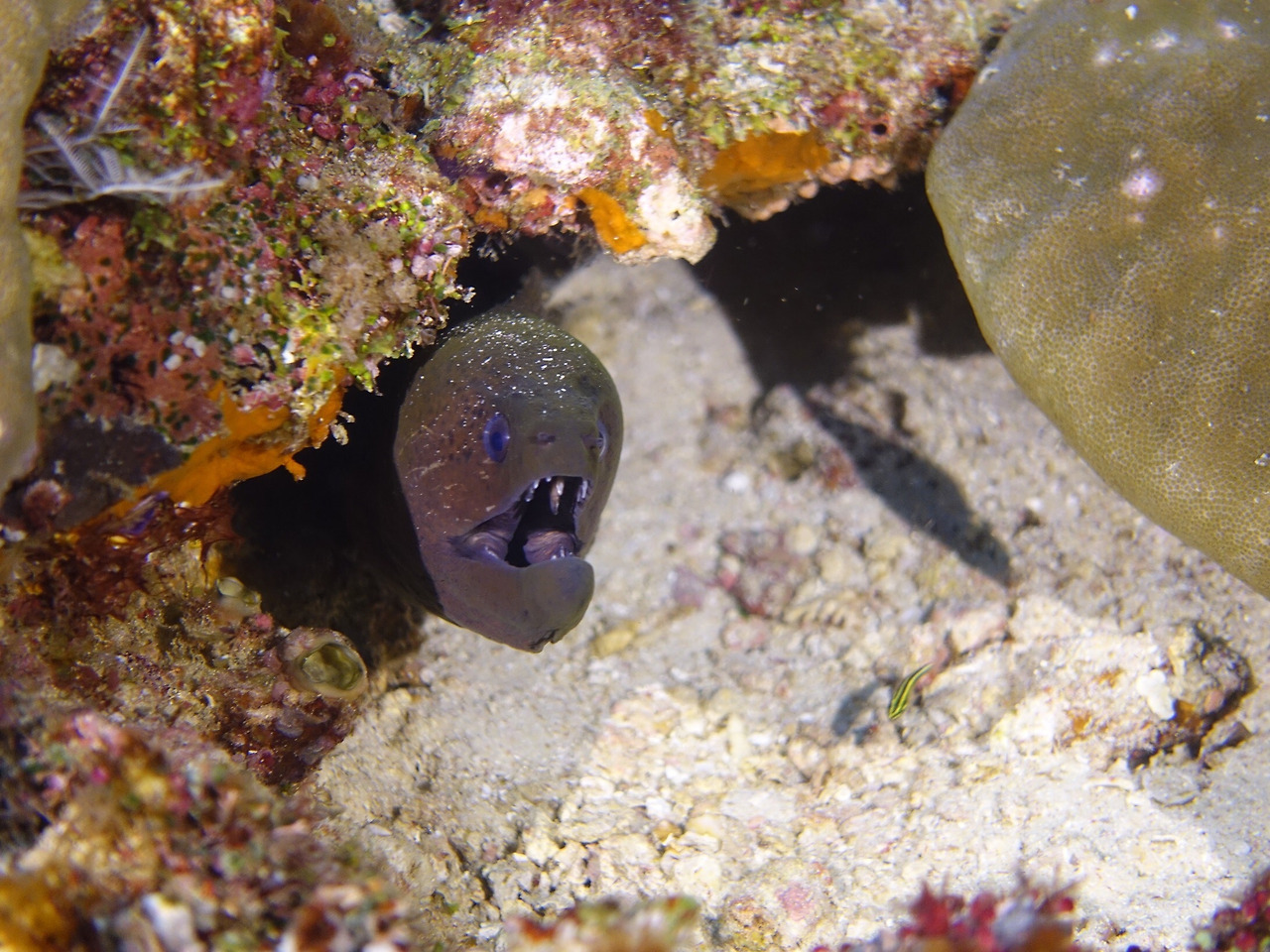 Moray eel이 옆 얼굴을 번듯이 보여주는 게 잘 나왔다.