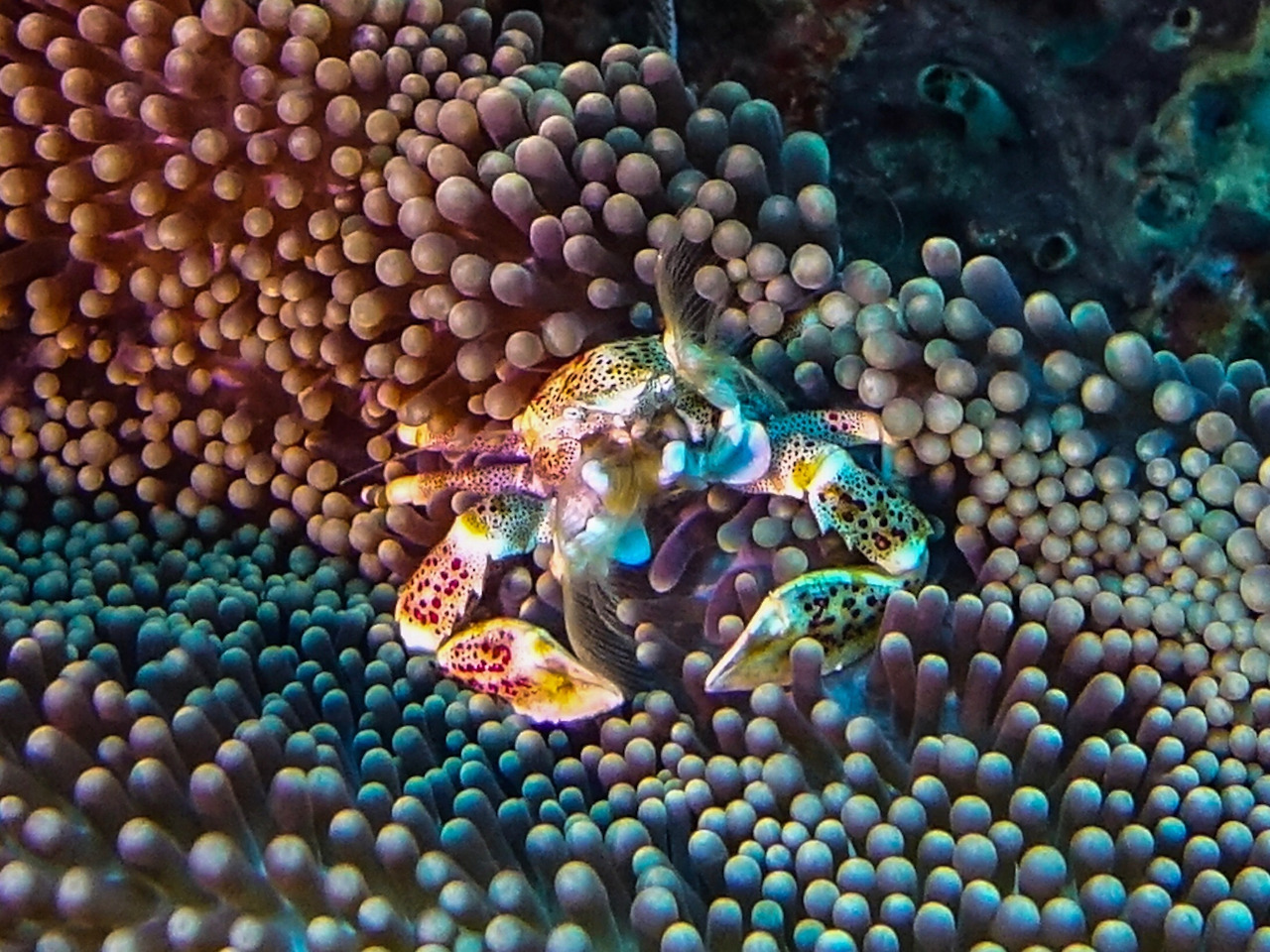 Candy crab. 실제로는 색깔이 산호와 비슷해서 구별이 쉽지 않다.